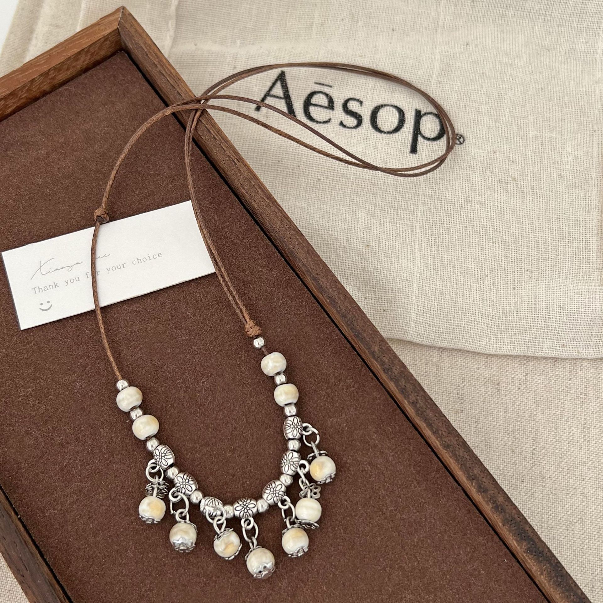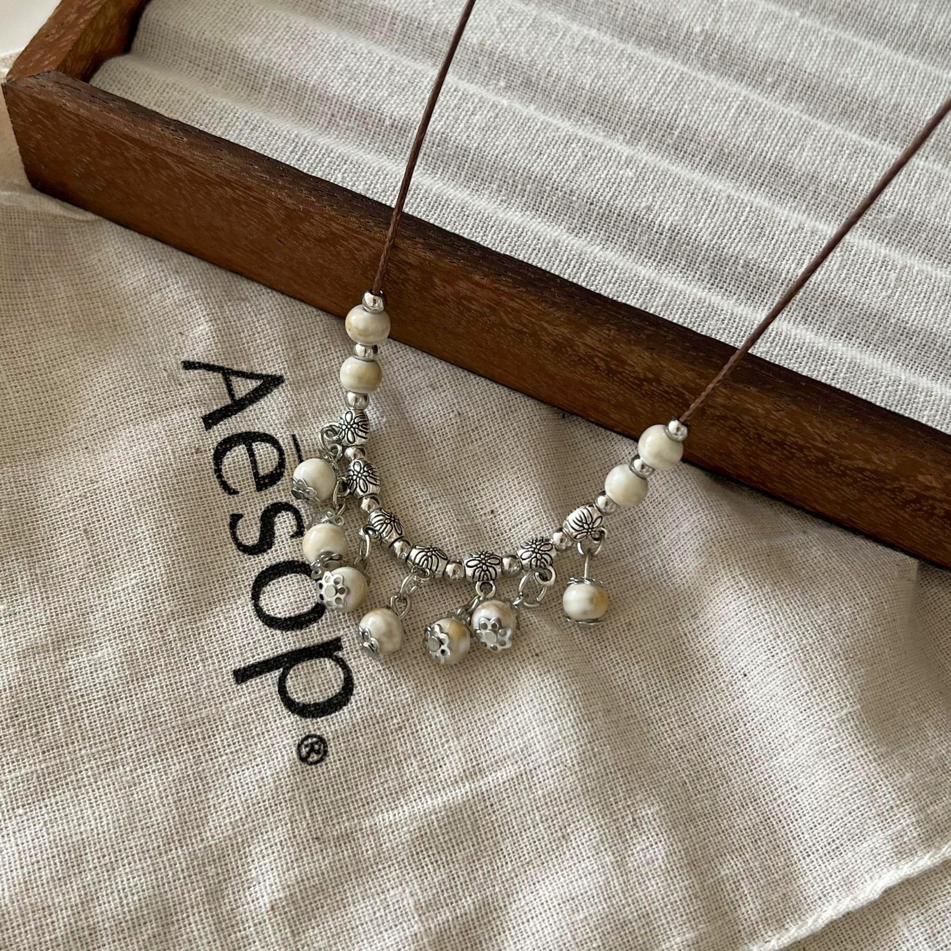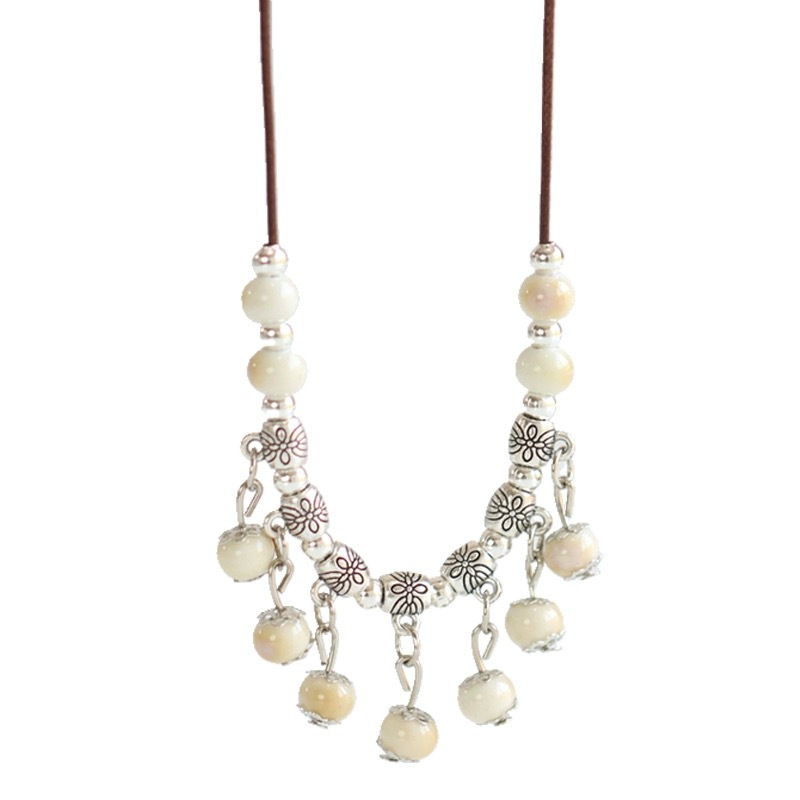 新中式项链小清新民族风毛衣链百搭好看随性氛围感饰品陶瓷吊坠女