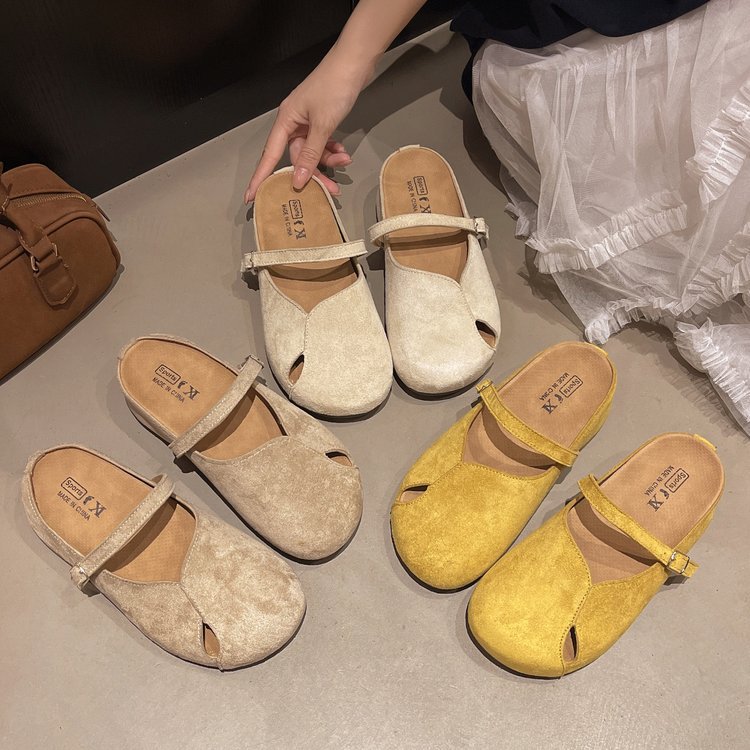 内增高包头半拖鞋女夏外穿2025新款法式软底配裙子沙滩休闲凉拖鞋