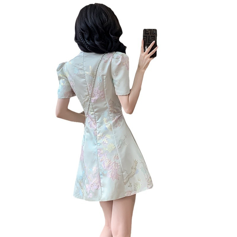 新中式国风复古改良旗袍裙夏季新款小个子盘扣立领收腰连衣裙女夏
