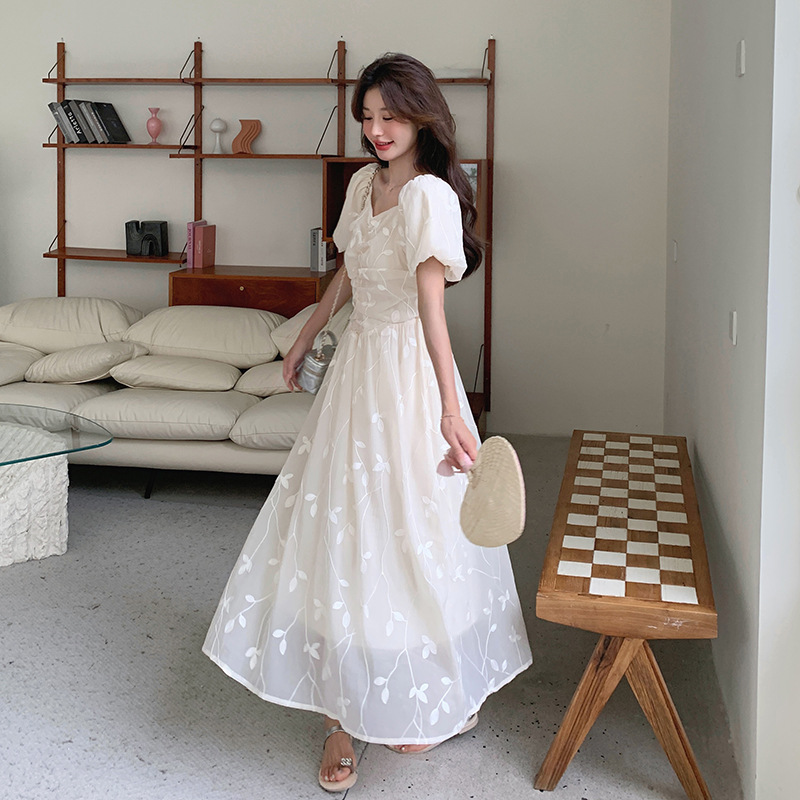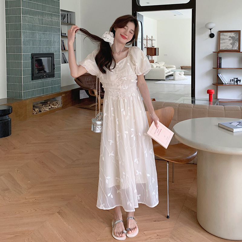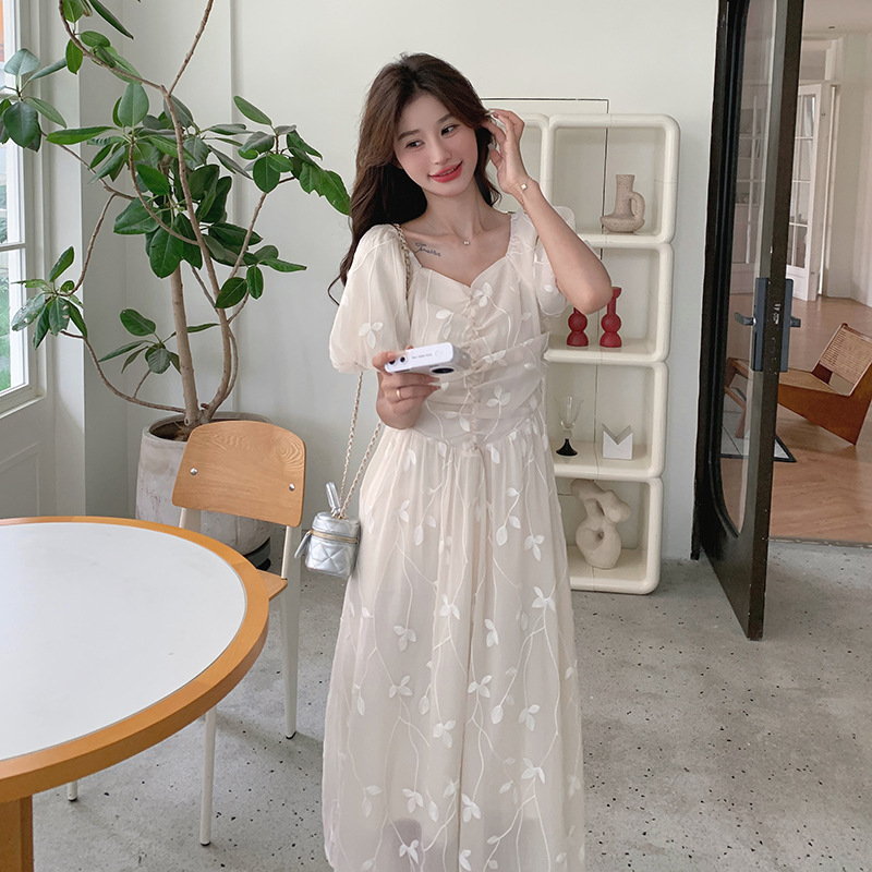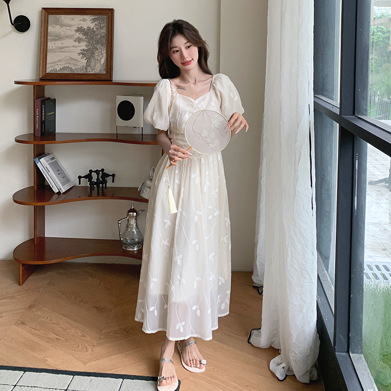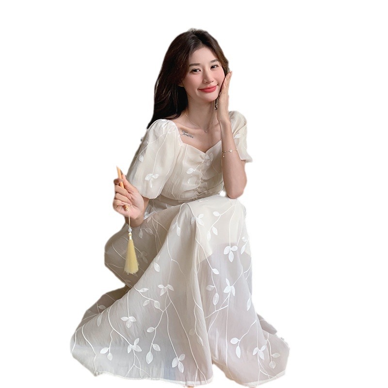 法式刺绣提花女装新中式碎花连衣裙夏季复古气质国风改良旗袍