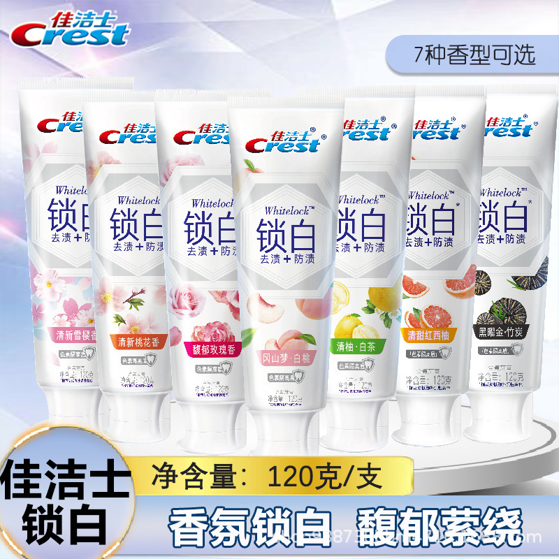 佳洁士锁白牙膏小白管桃花雪樱玫瑰清新口气小苏打正品