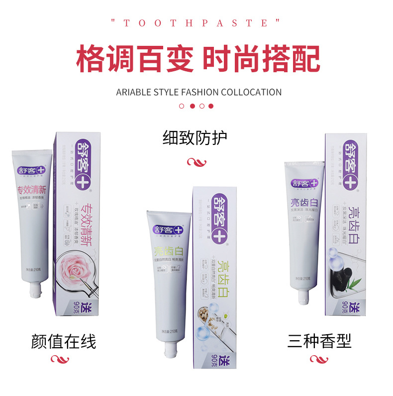 210g舒克牙膏 亮齿白专效清新 玫瑰竹炭柠檬香型