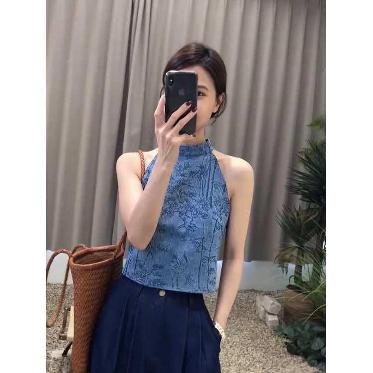复古竹子提花国风背心女夏天露肩气质短款小衫新中式挂脖无袖上衣