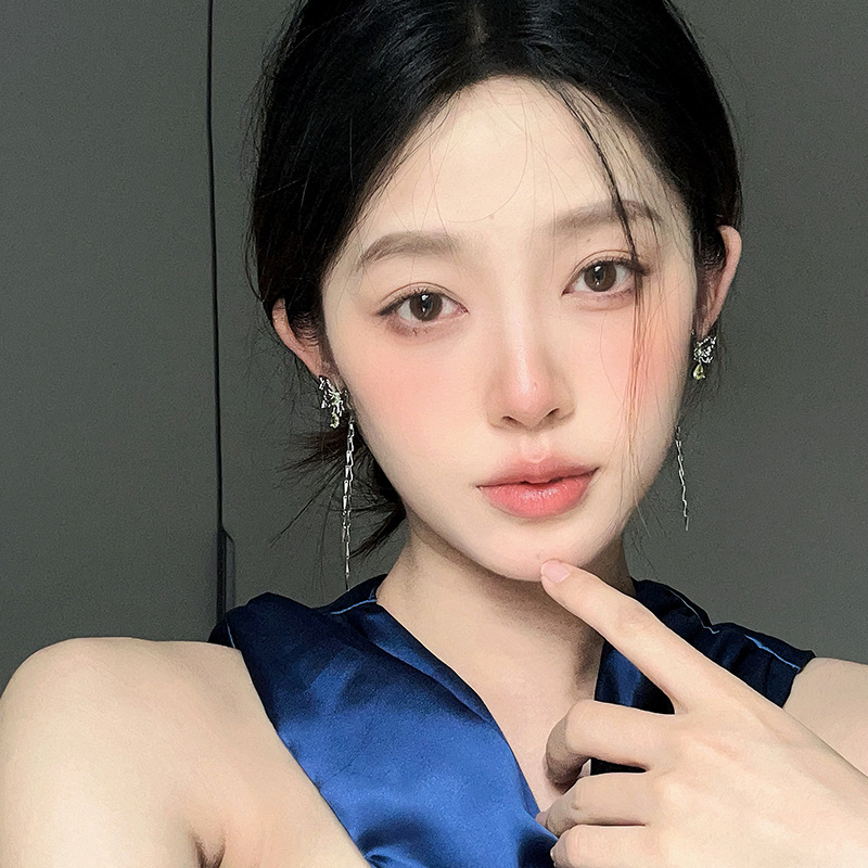 轻奢绿色锆石蝴蝶流苏耳环女小众设计感长款流苏耳坠独特个性耳饰