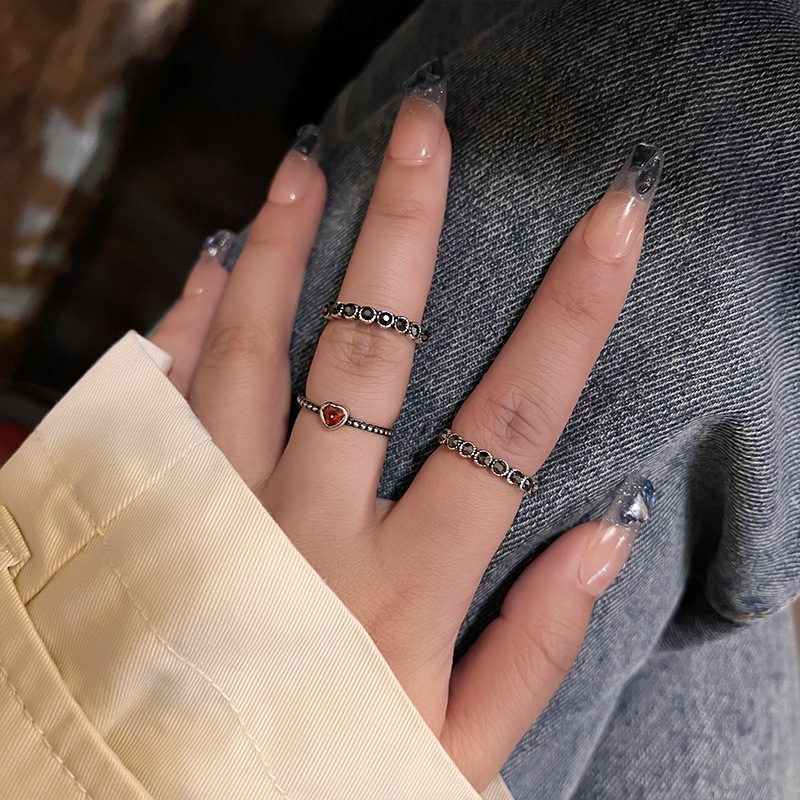 复古做旧黑色锆石爱心戒指套装简约镶钻指环个性百搭金属食指戒潮