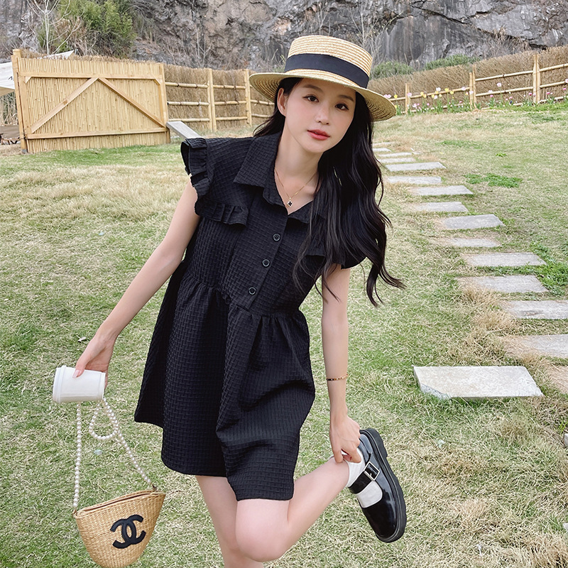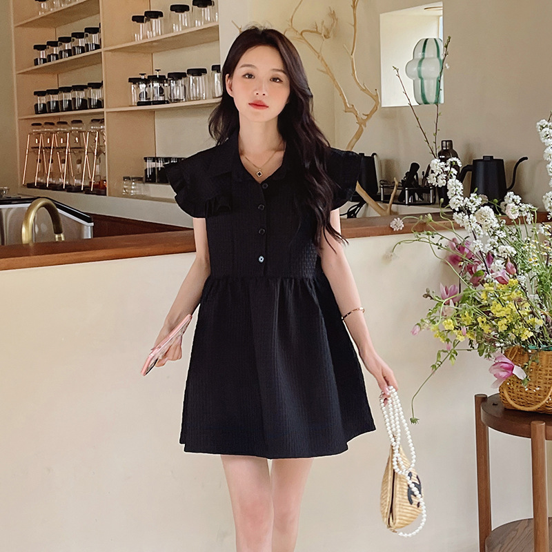 现小个子黑丝赫本裙女夏季新款小个子茶歇法式初恋清纯