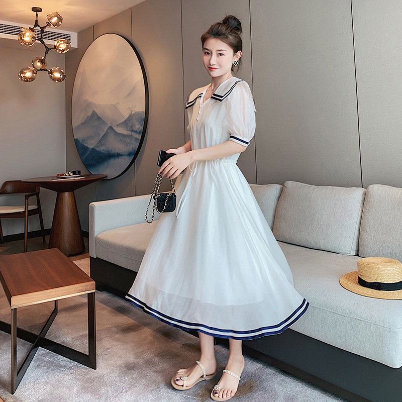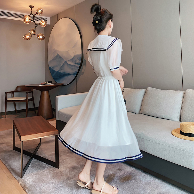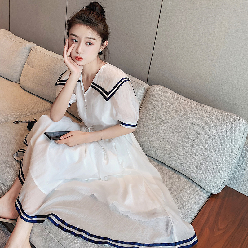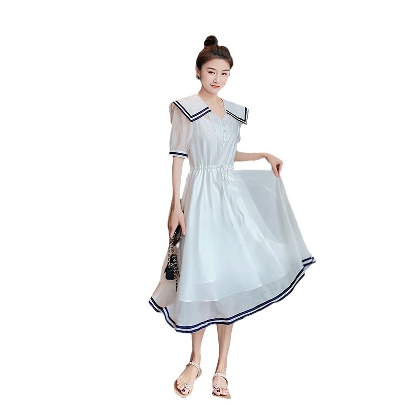 可盐可甜海军领夏日连衣裙女年夏季新款温柔风短袖a字裙