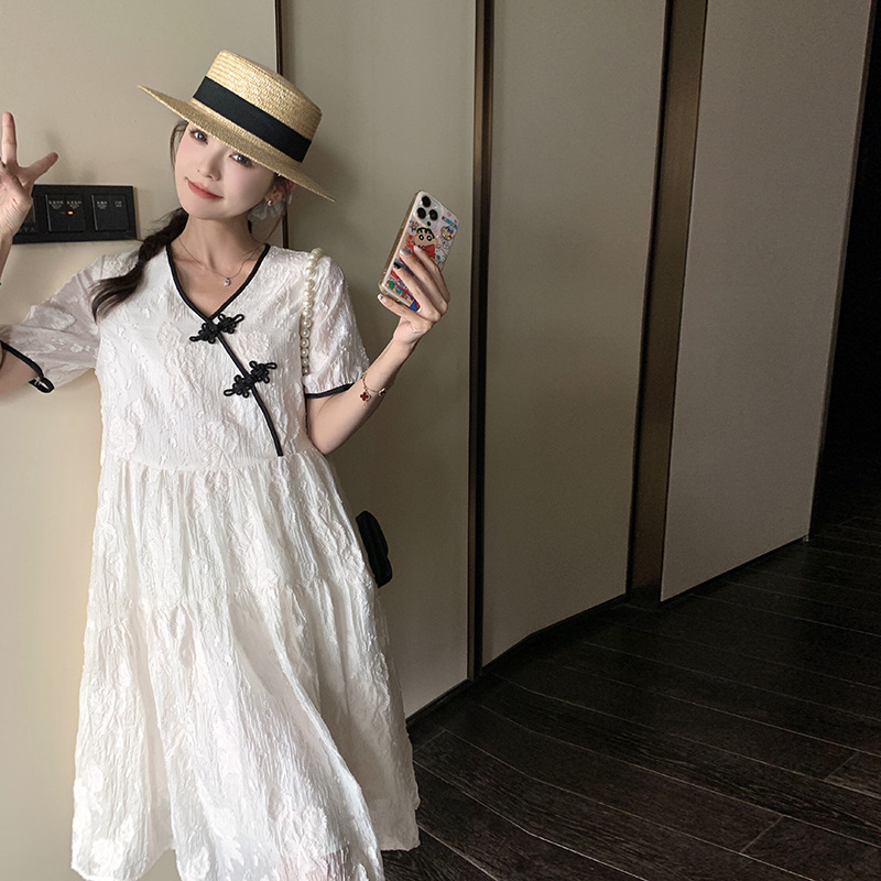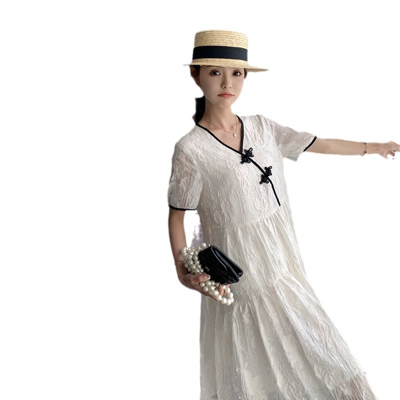 夏新款白色盘口提花连衣裙女夏季新款设计感短裙收腰显瘦裙子