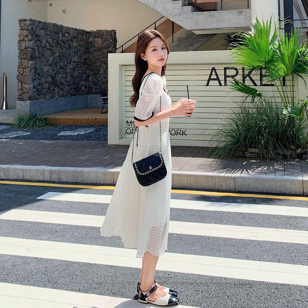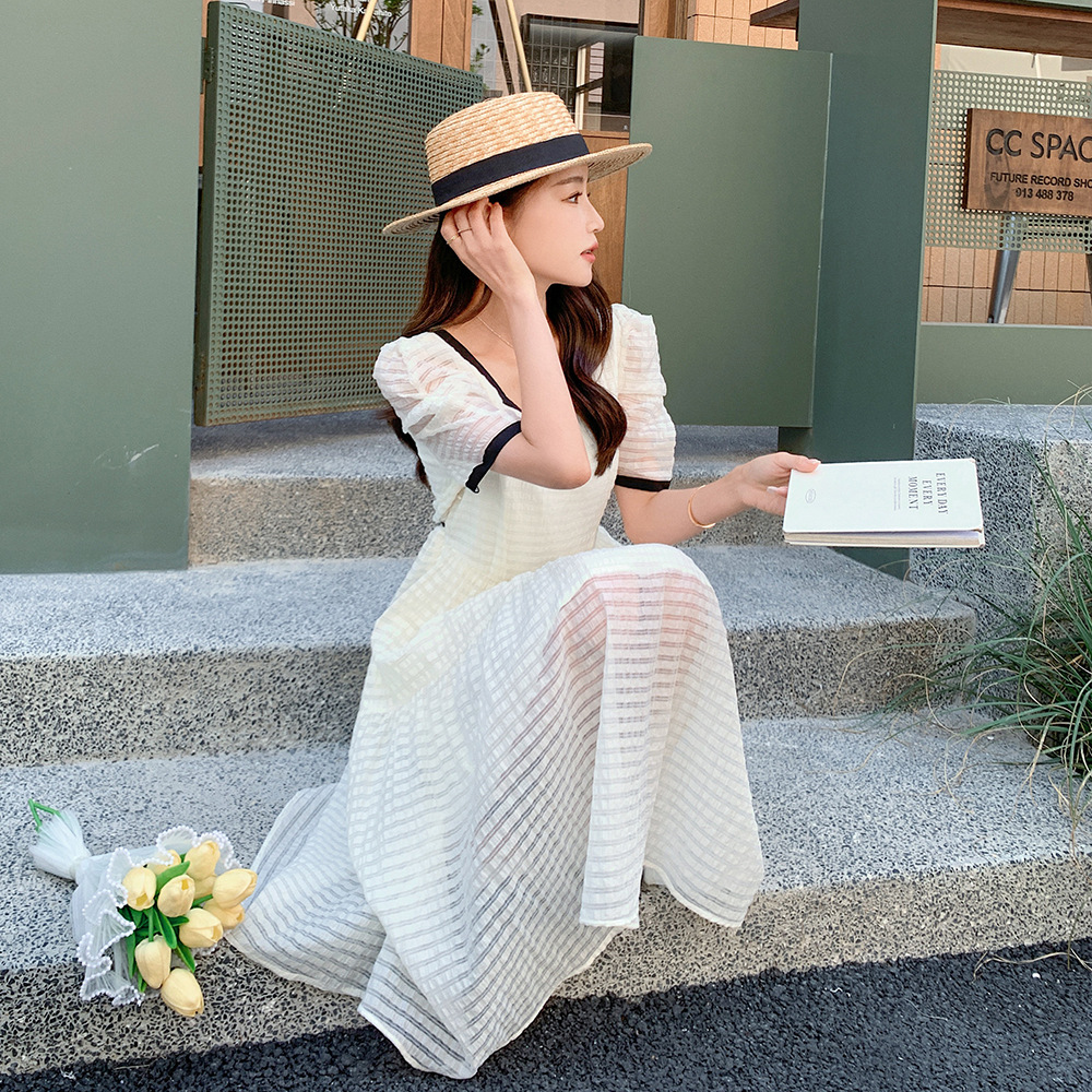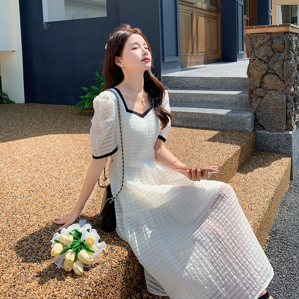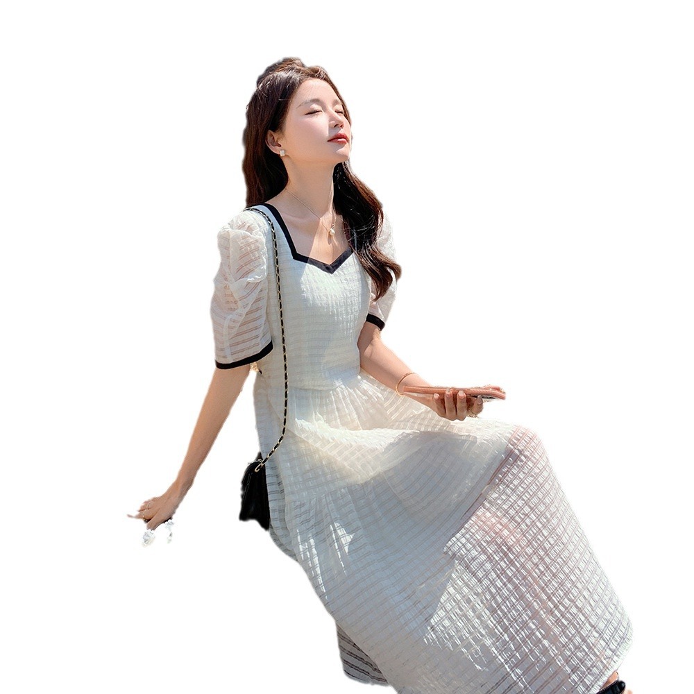夏季新款法式V领白色连衣裙子气质显瘦海边度假波西米亚长裙