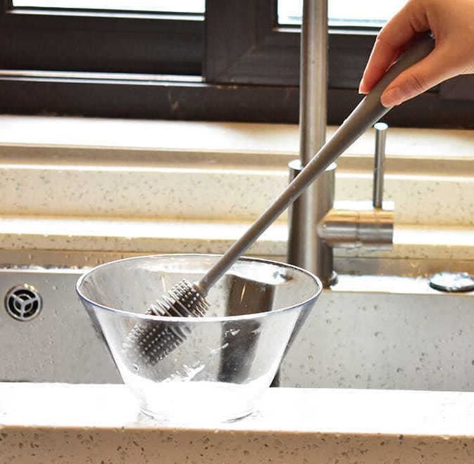 家用长柄硅胶旋转水杯刷子 厨房家用洗杯子去茶渍清洁刷