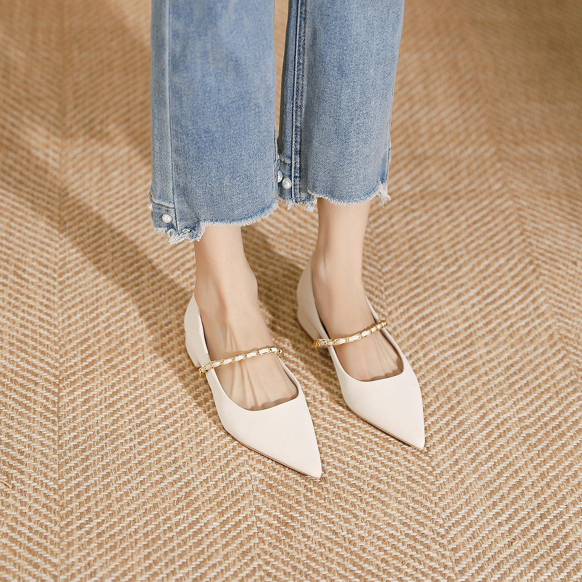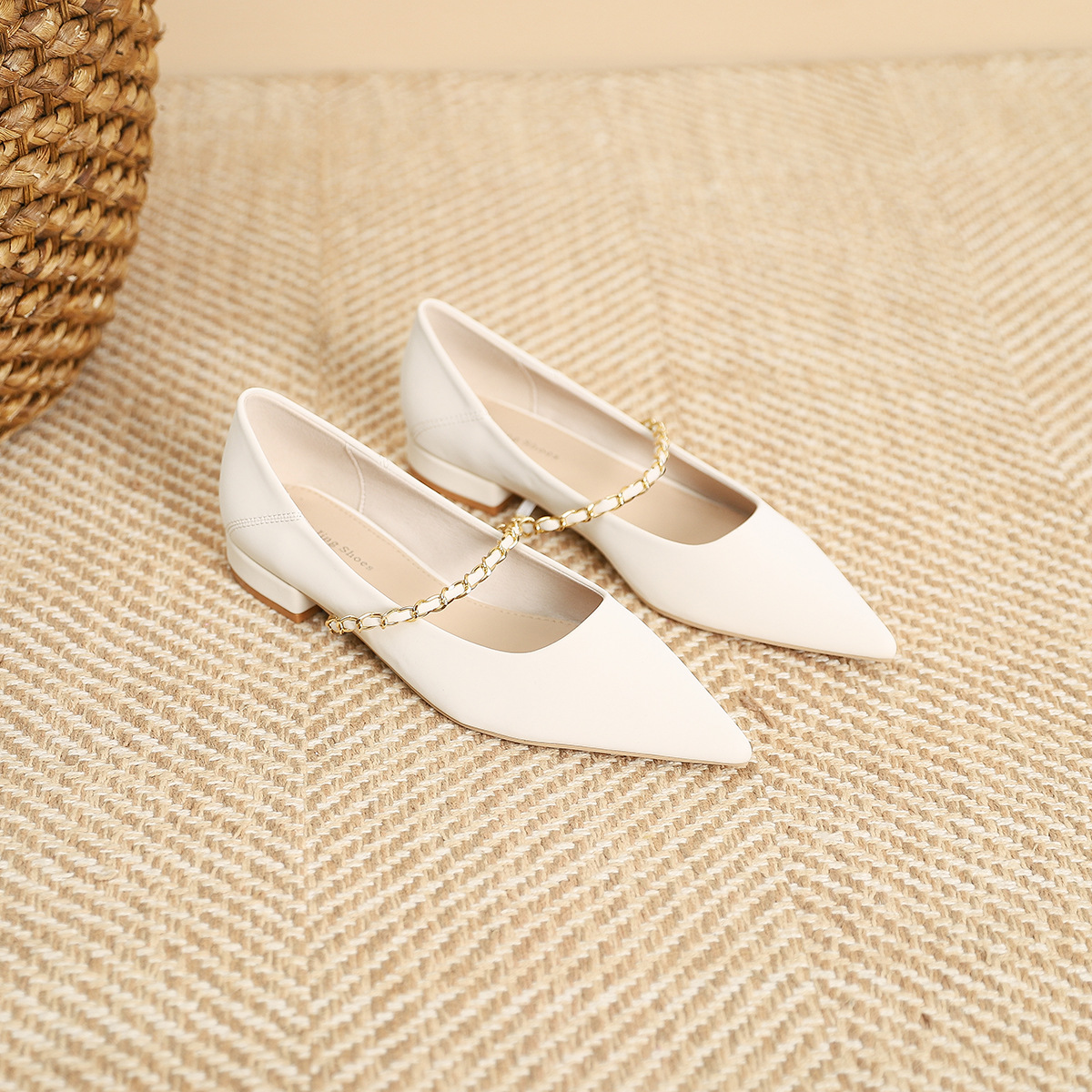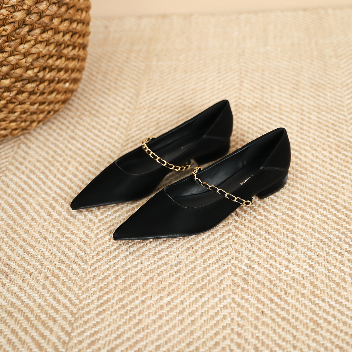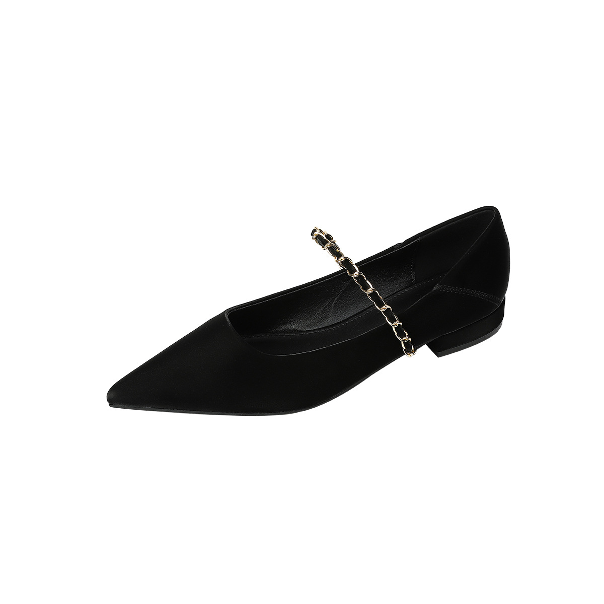 2008-7名媛风一字带链条尖头平底单鞋新款法式浅口四季低跟单鞋女