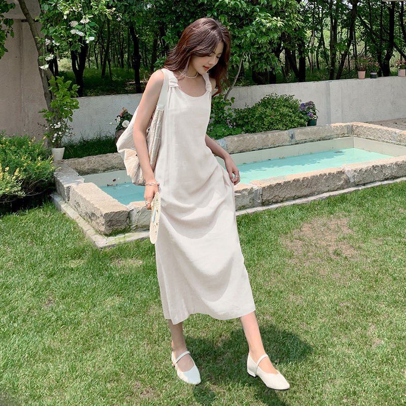 韩系纯色温柔风吊带连衣裙夏季新款气质仙女长款宽松休闲裙子