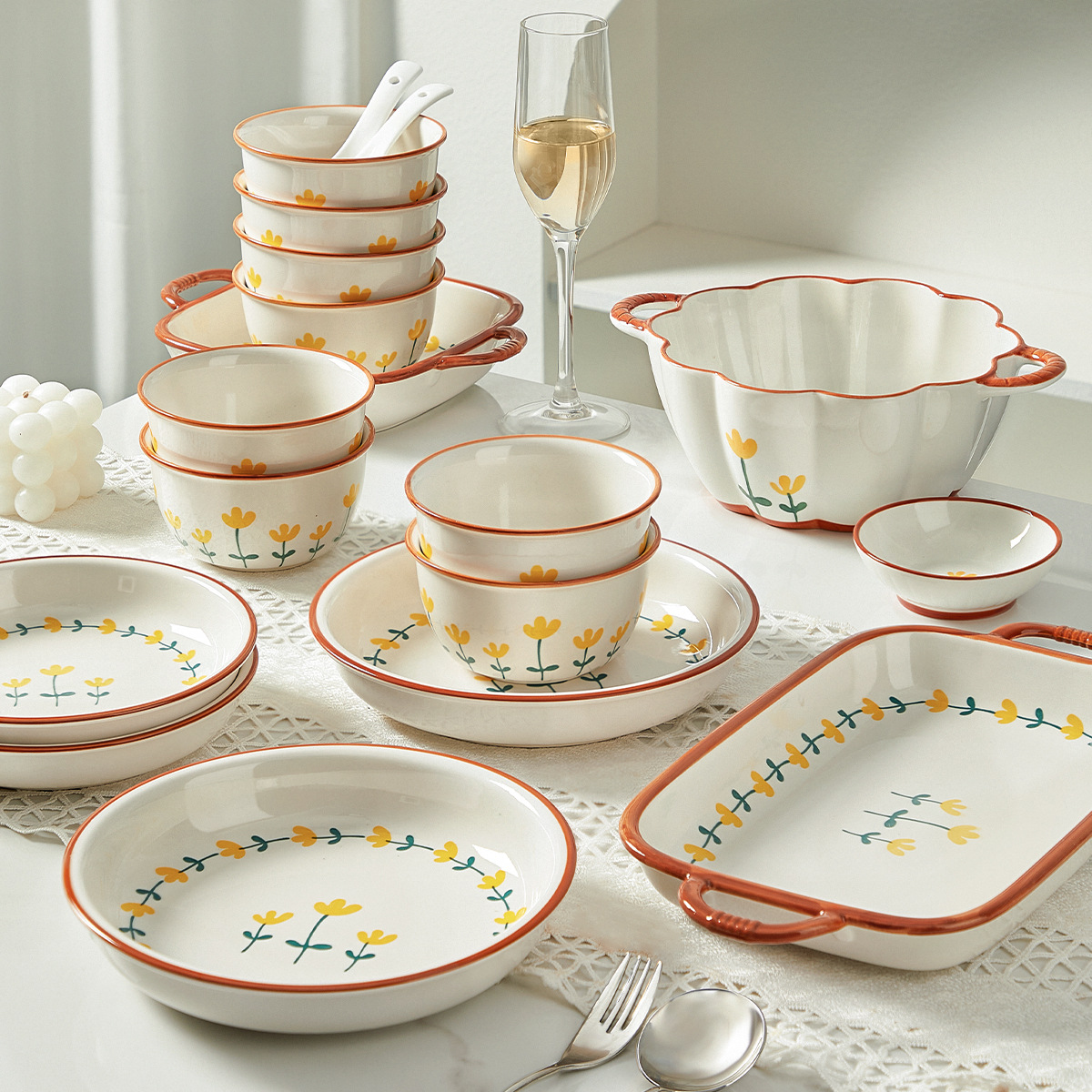 清新餐具碗碟套装家用陶瓷碗新款碗盘高颜值碗筷盘子碗具套装