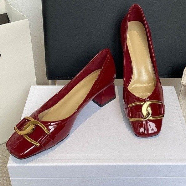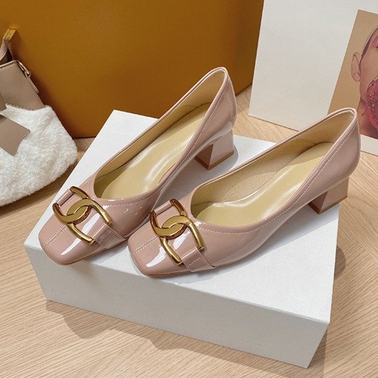 女鞋法式方头单鞋女软皮秋季新款通勤气质粗跟方扣高跟鞋