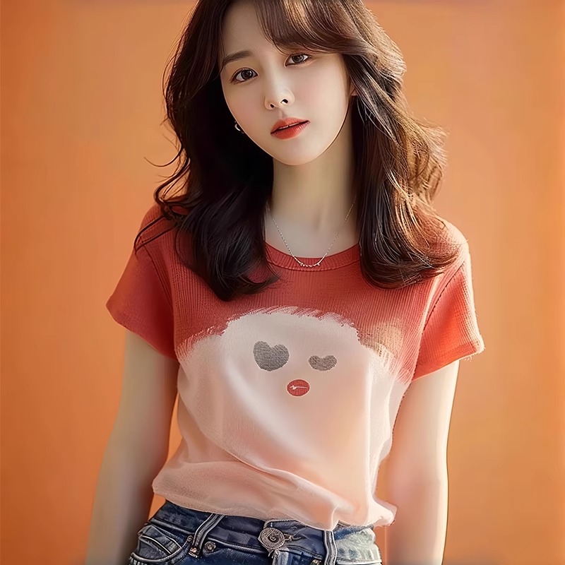 撞色正肩短袖t恤女夏季2025新款设计感绝美短款洋气减龄显瘦上衣