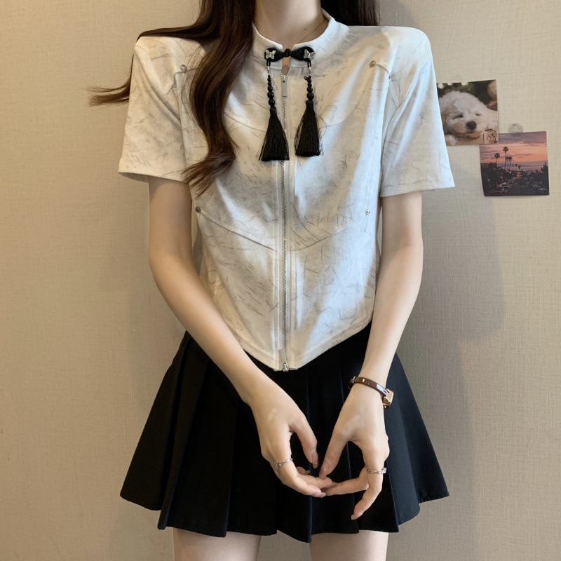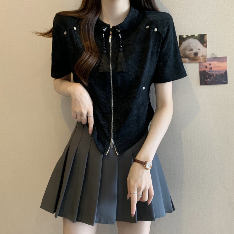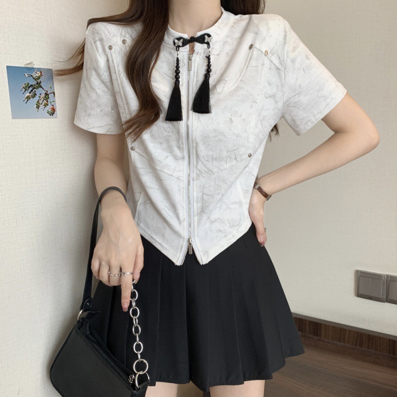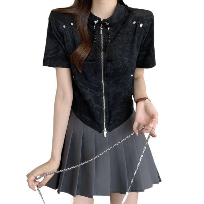 实拍新款胖MM新中式国苏双拉链上衣修身显瘦洋气小衫