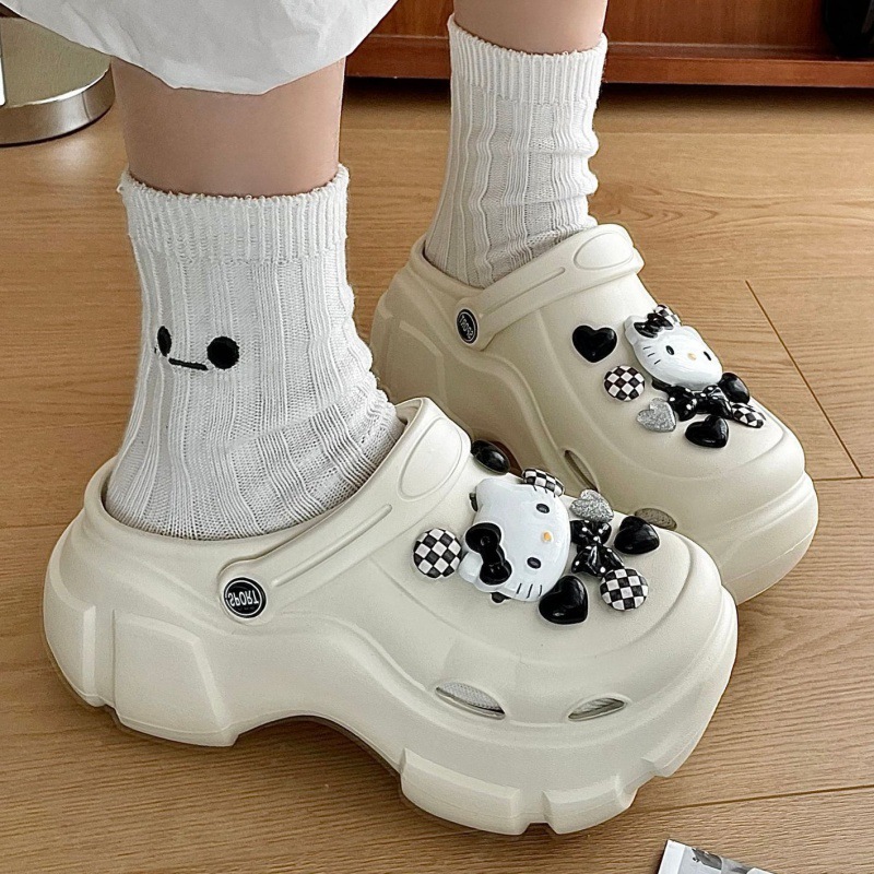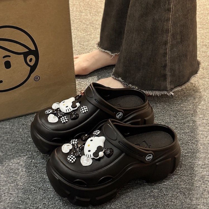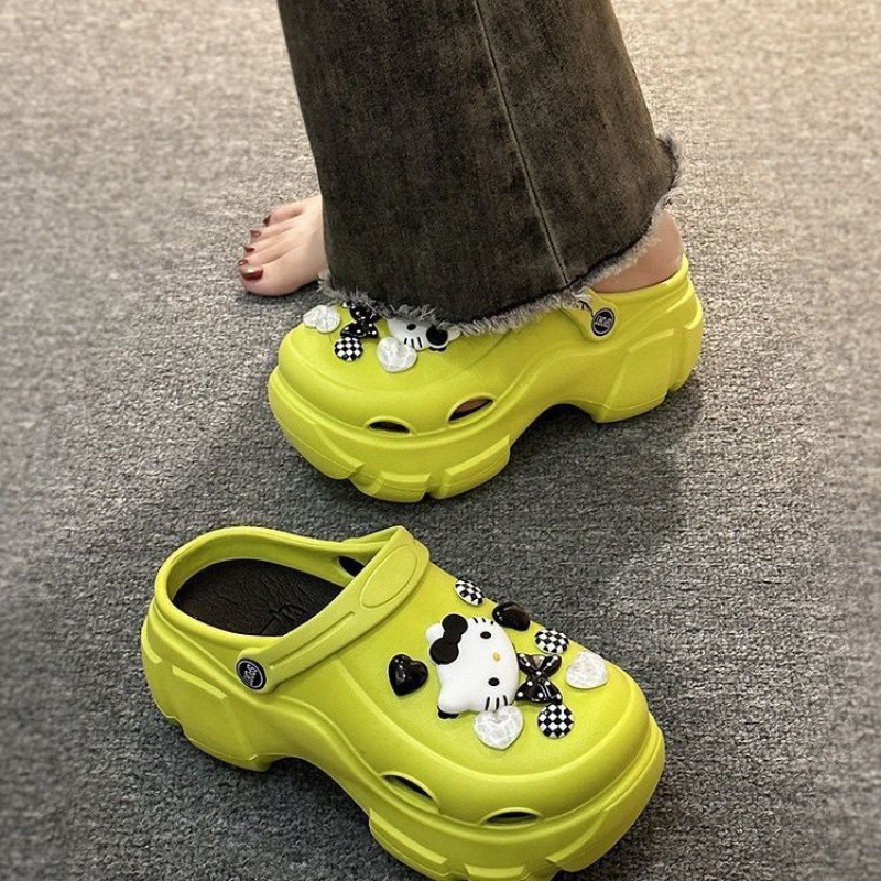 高跟新款踩屎感洞洞鞋女生卡通可爱厚底超软防滑包头凉拖鞋女外穿