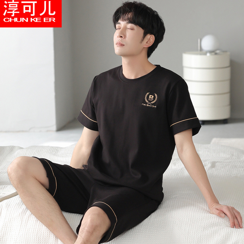 睡衣男士夏季纯棉短袖短裤家居服男款青少年夏天薄款大码套装