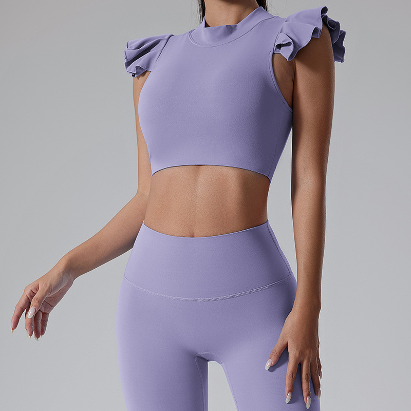 高级裸感荷叶边瑜伽上衣女显瘦美背运动跑步瑜伽健身文胸背心