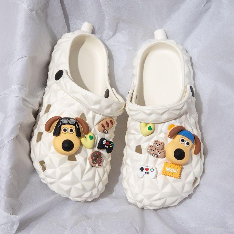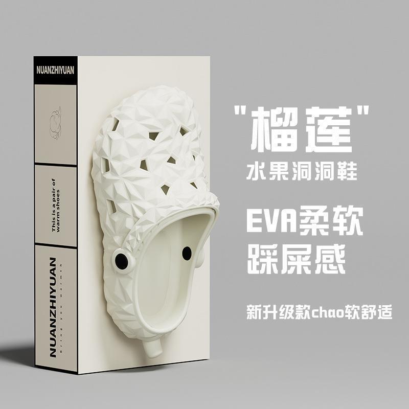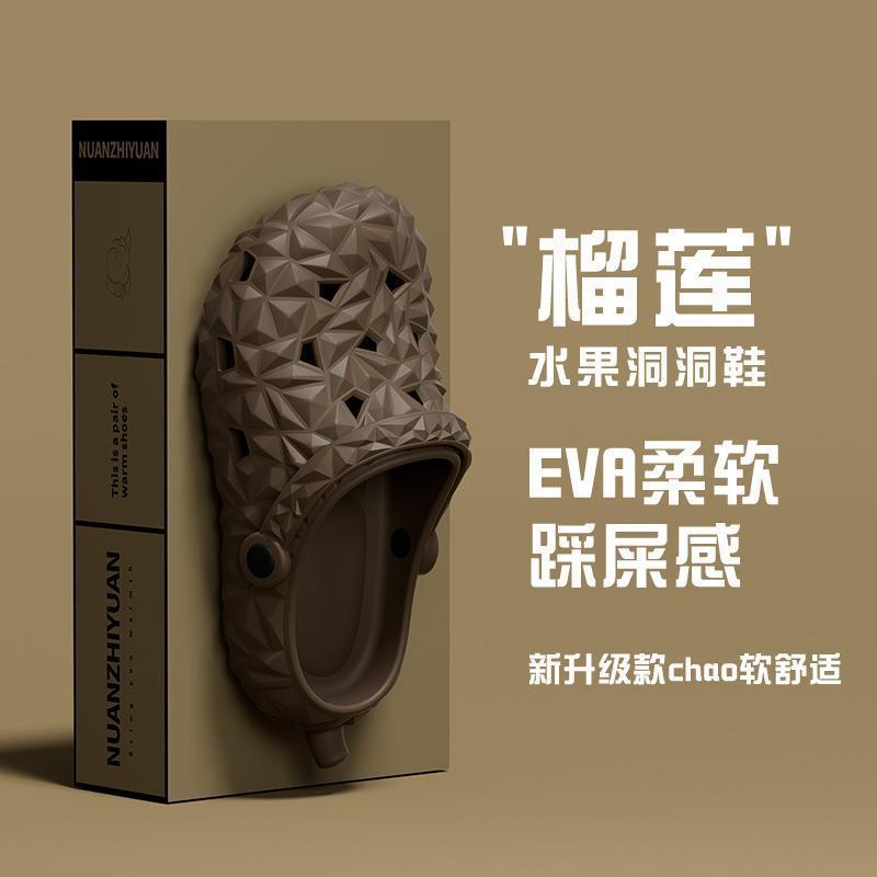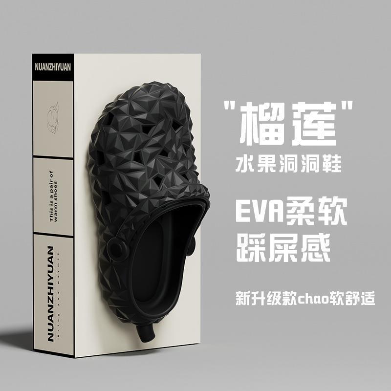 创意榴莲洞洞鞋女夏季简约户外沙滩软底情侣踩屎感水果卡通凉鞋