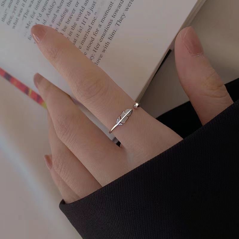 s925纯银日韩风森系树叶开口戒指女简约创意羽毛手饰