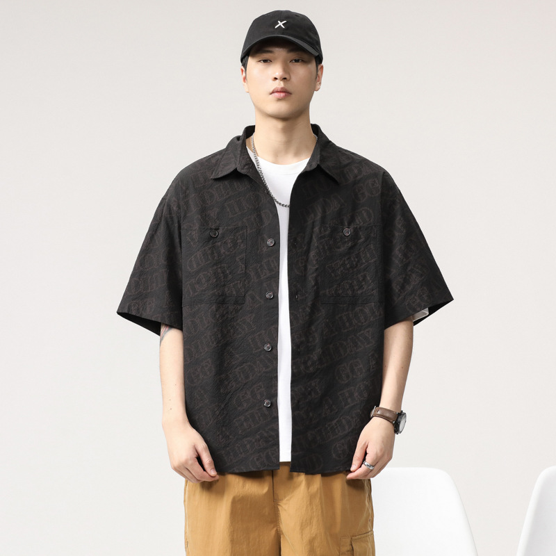 泡泡肌理感冰丝凉感短袖衬衫外套男士夏季2025新款日系高级感寸衣