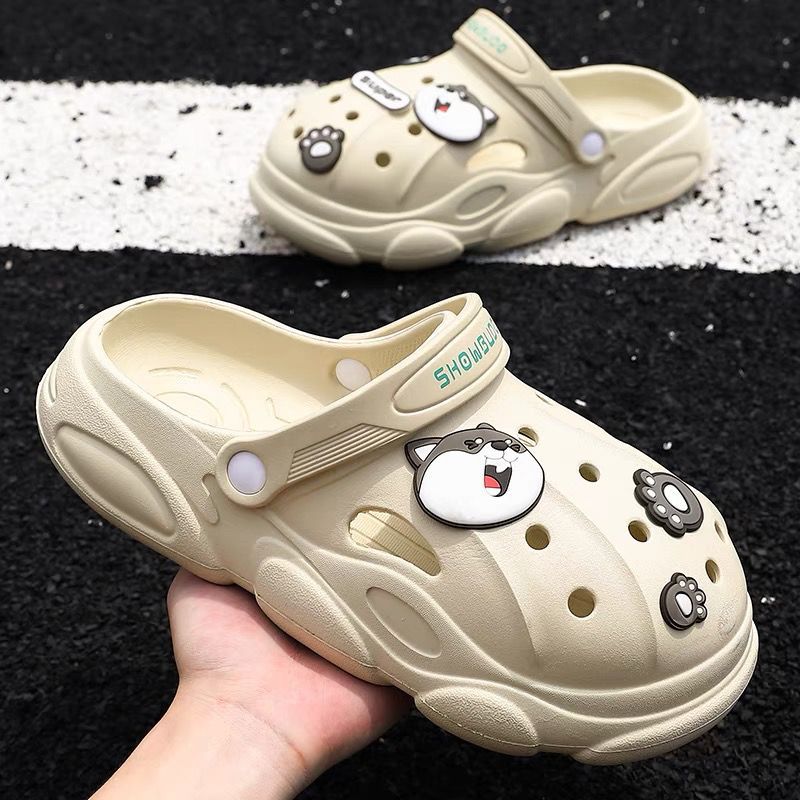 时尚外穿洞洞鞋男女情侣款户外沙滩凉鞋时尚百搭卡通包头鞋女