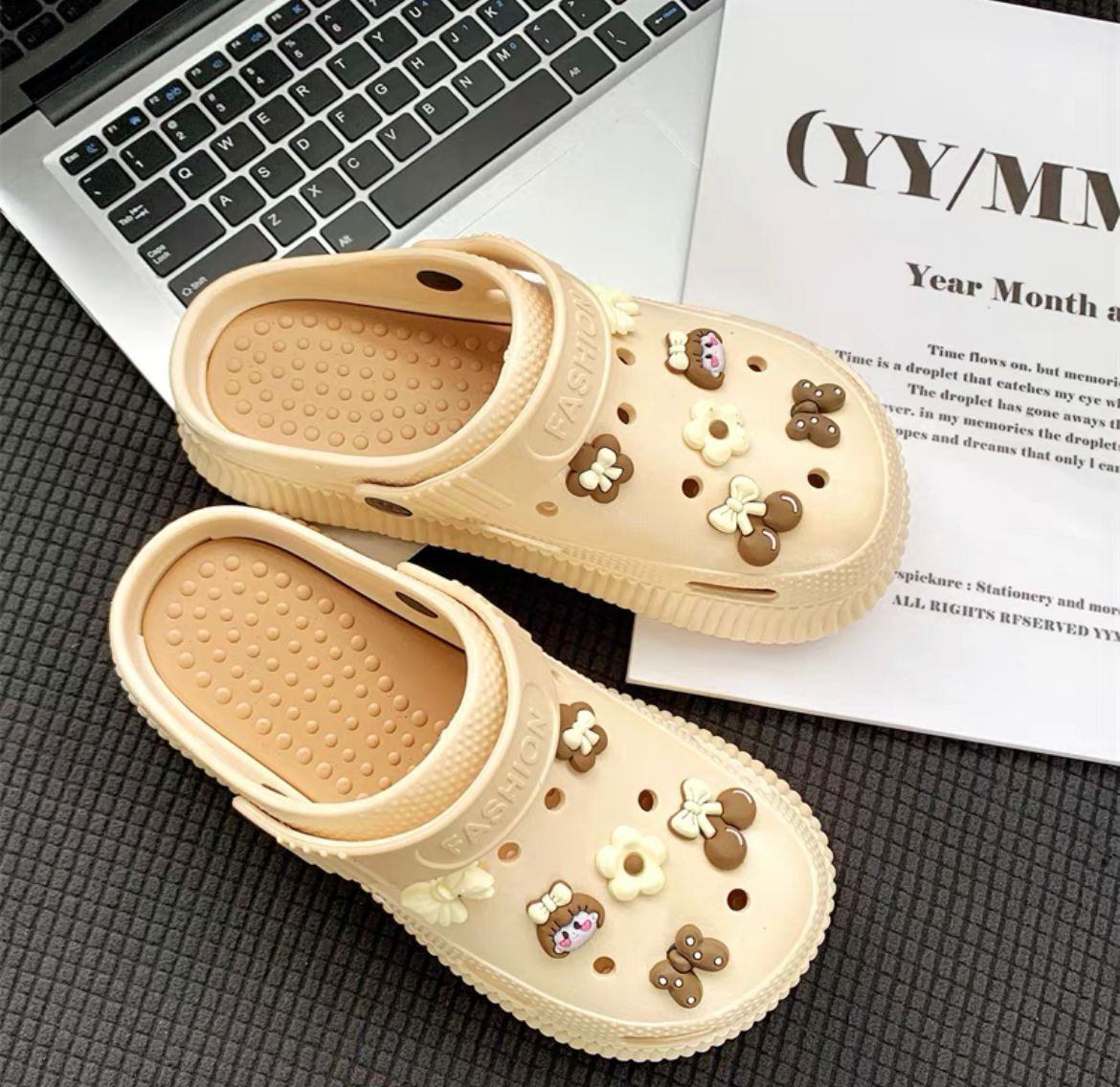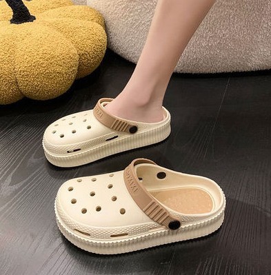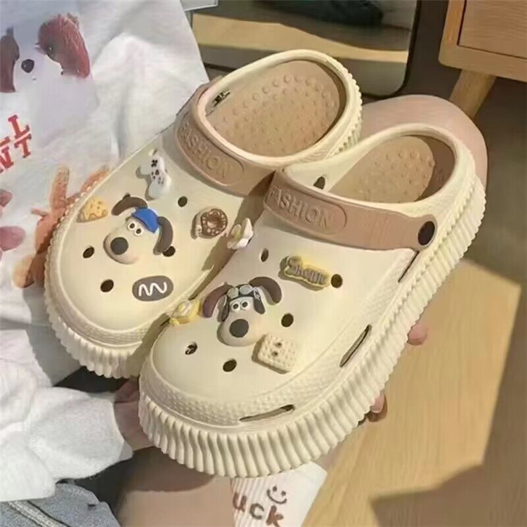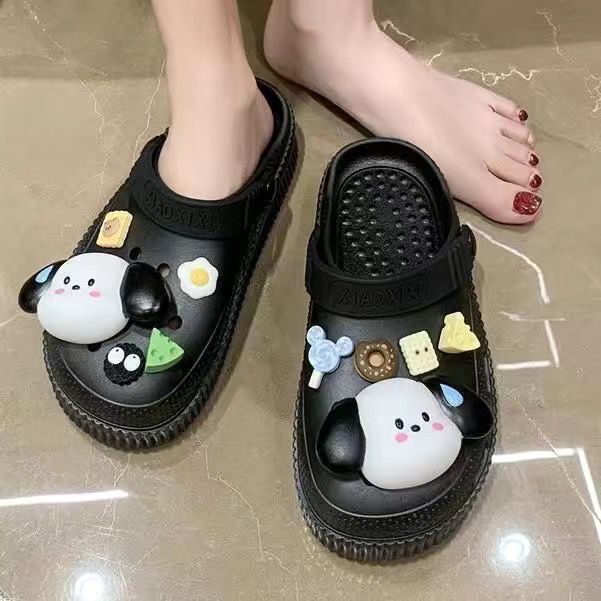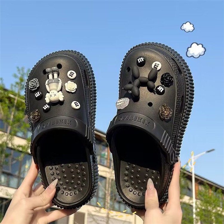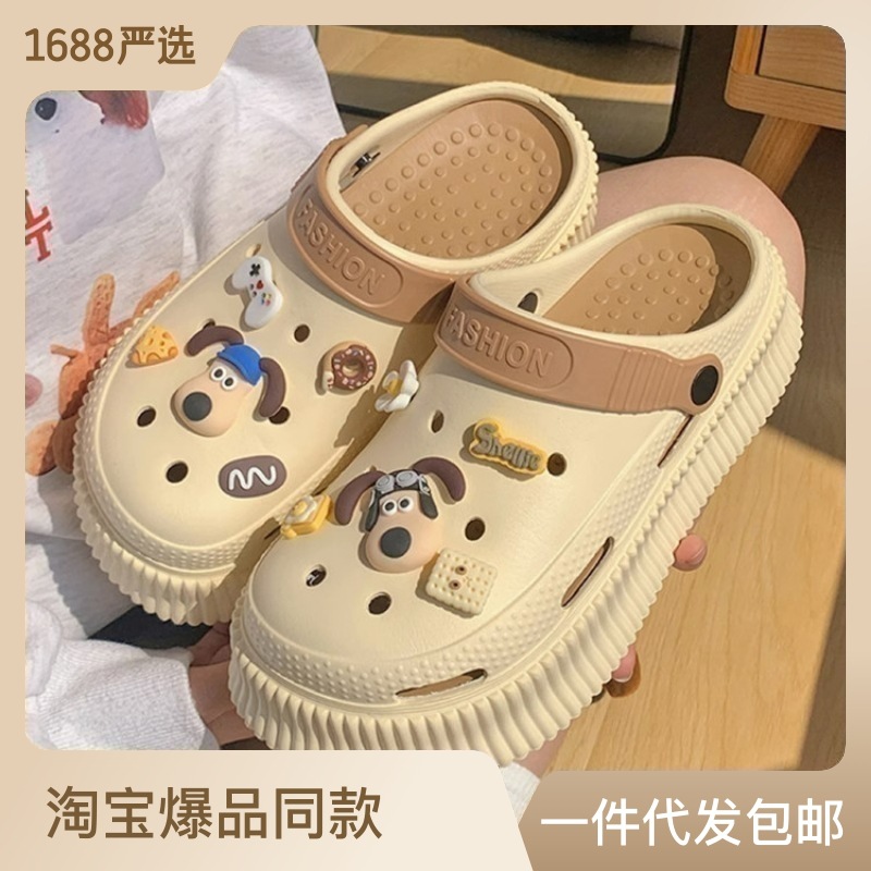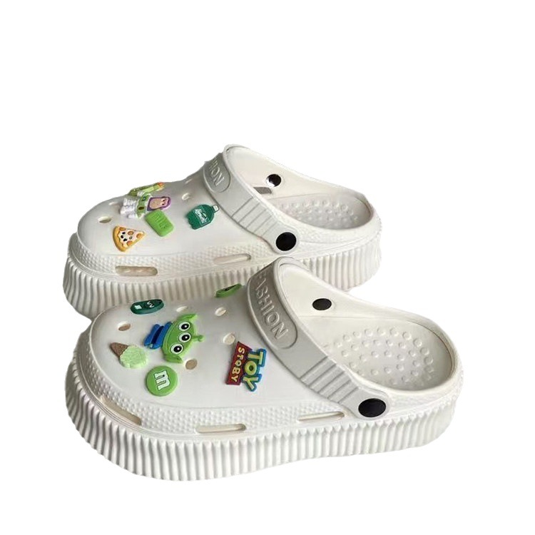 新款洞洞鞋女ins潮外穿夏季百搭增高松糕包头沙滩凉拖鞋卡通