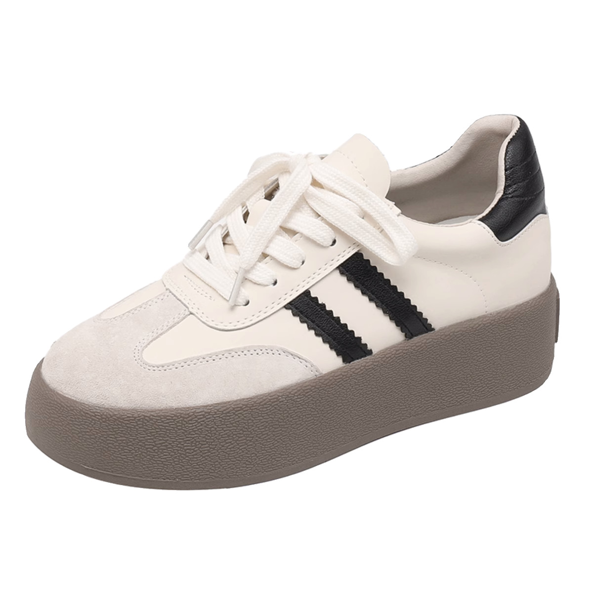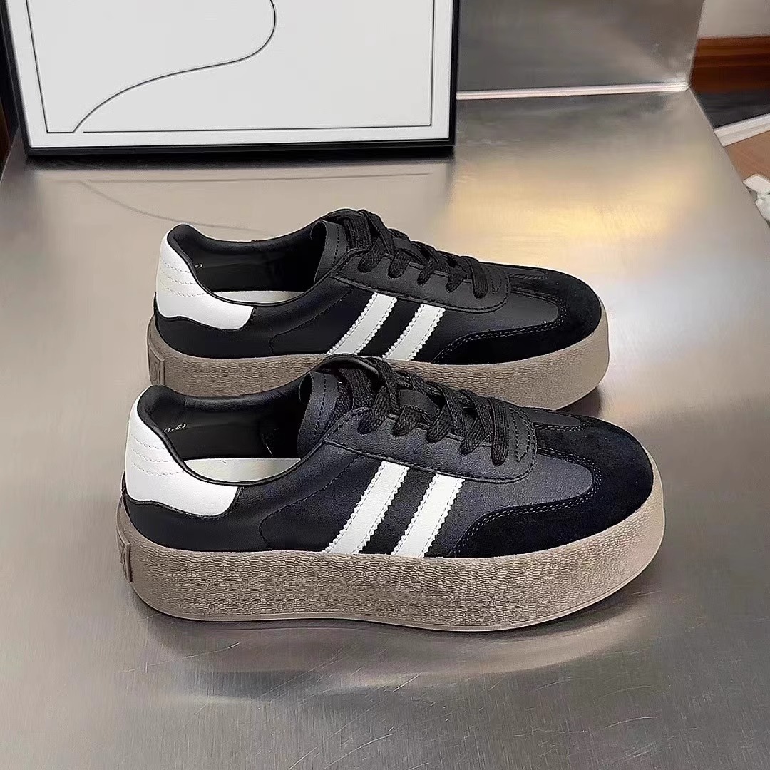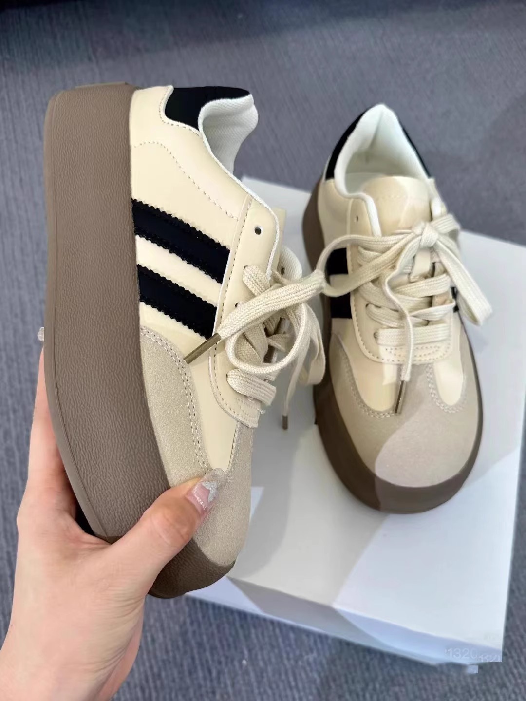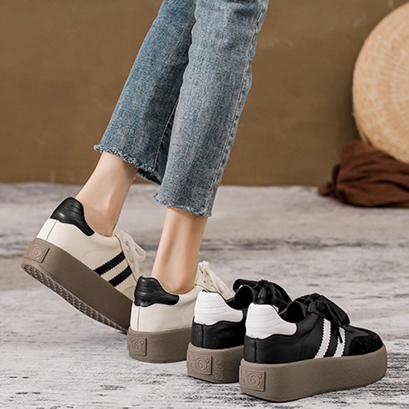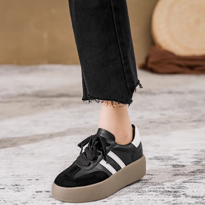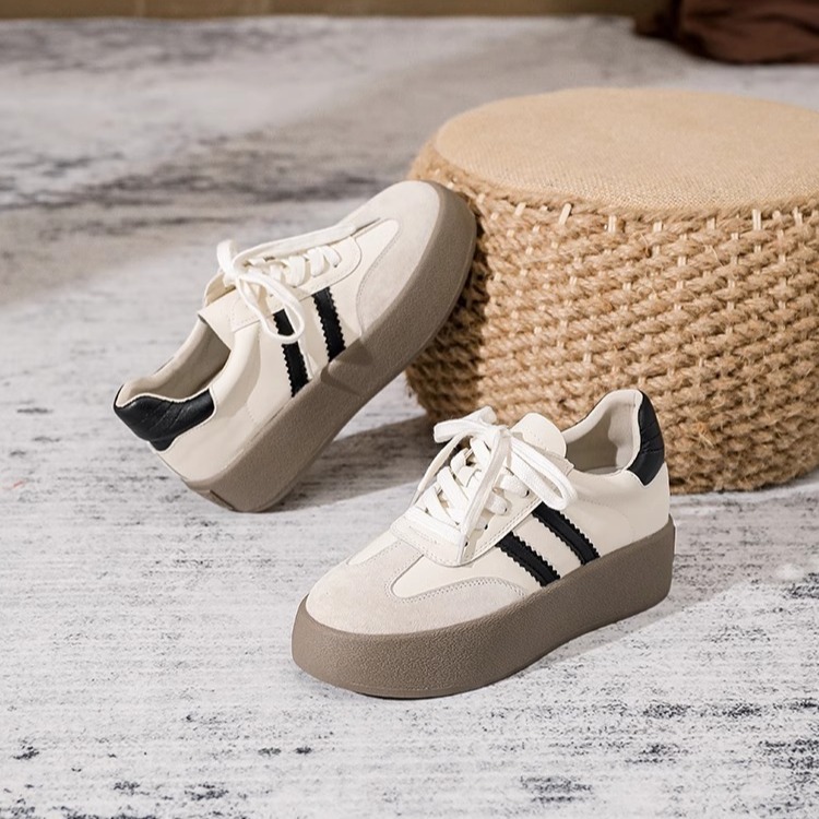 小众复古德训板鞋女春季新款百搭厚底内增高小白鞋休闲单鞋子