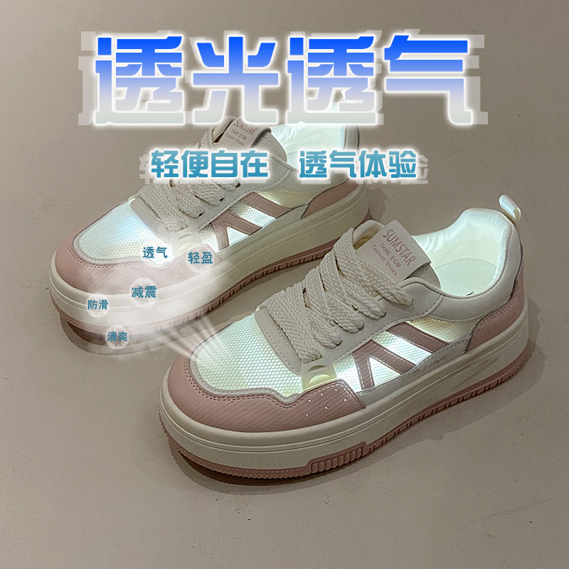 学生厚底网面透气小白鞋女春季新款小众百搭轻便休闲运动板鞋