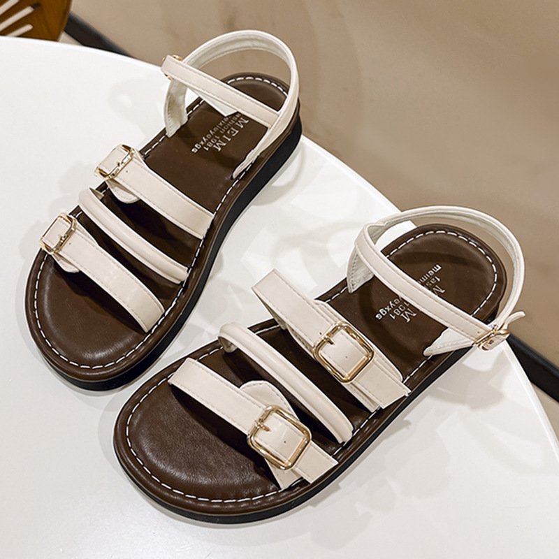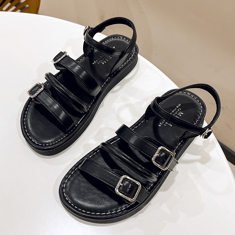 真皮仙女风厚底罗马凉鞋女外穿年夏季新款百搭一字扣带沙滩鞋