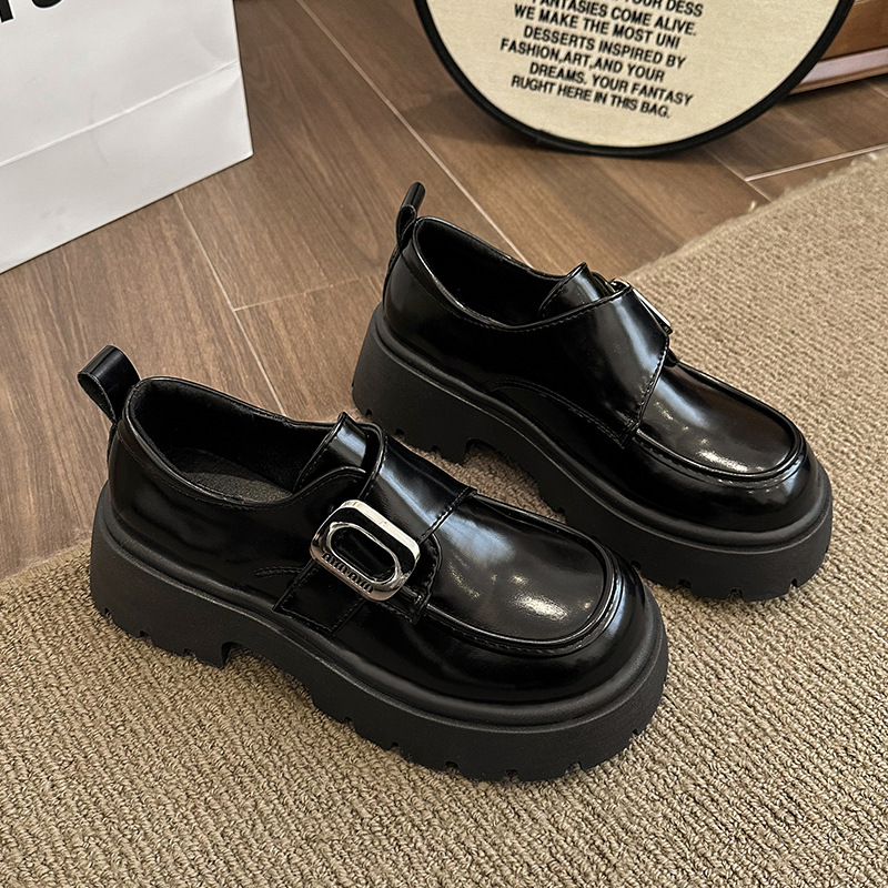 真皮松糕厚底乐福鞋女年春季新款百搭魔术贴小皮鞋日系jk单鞋
