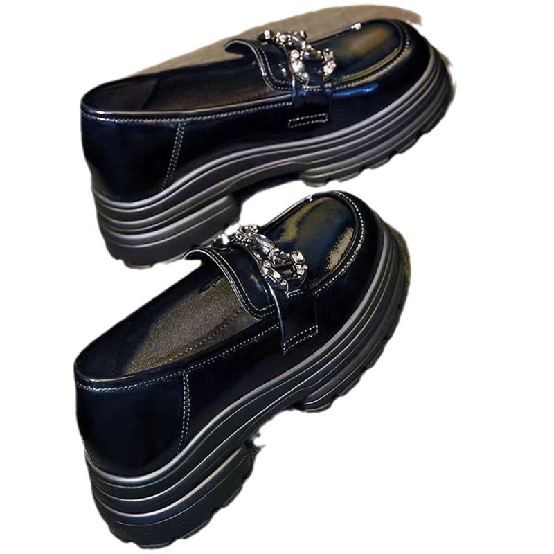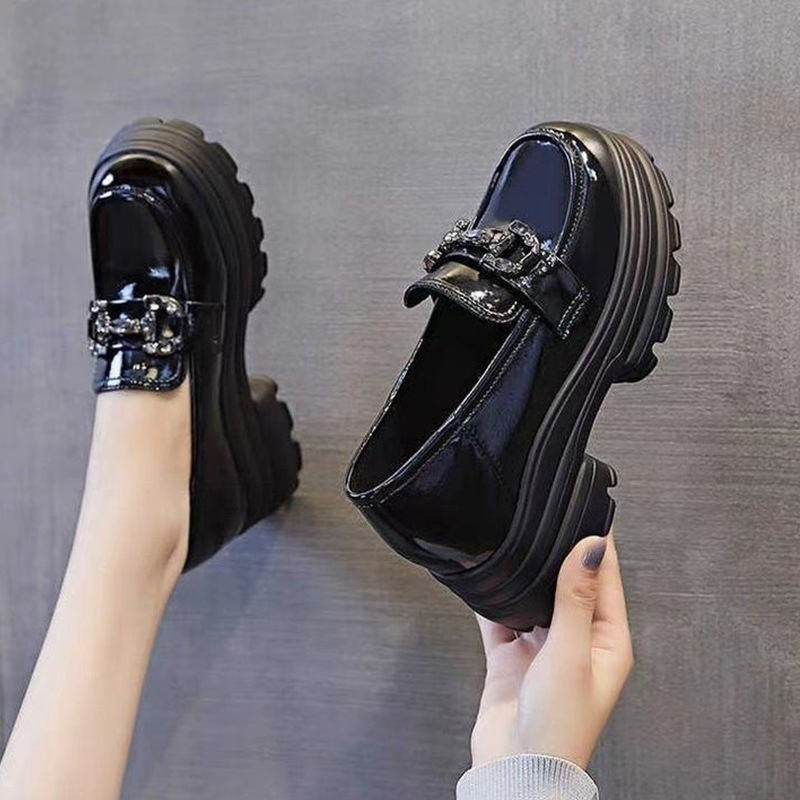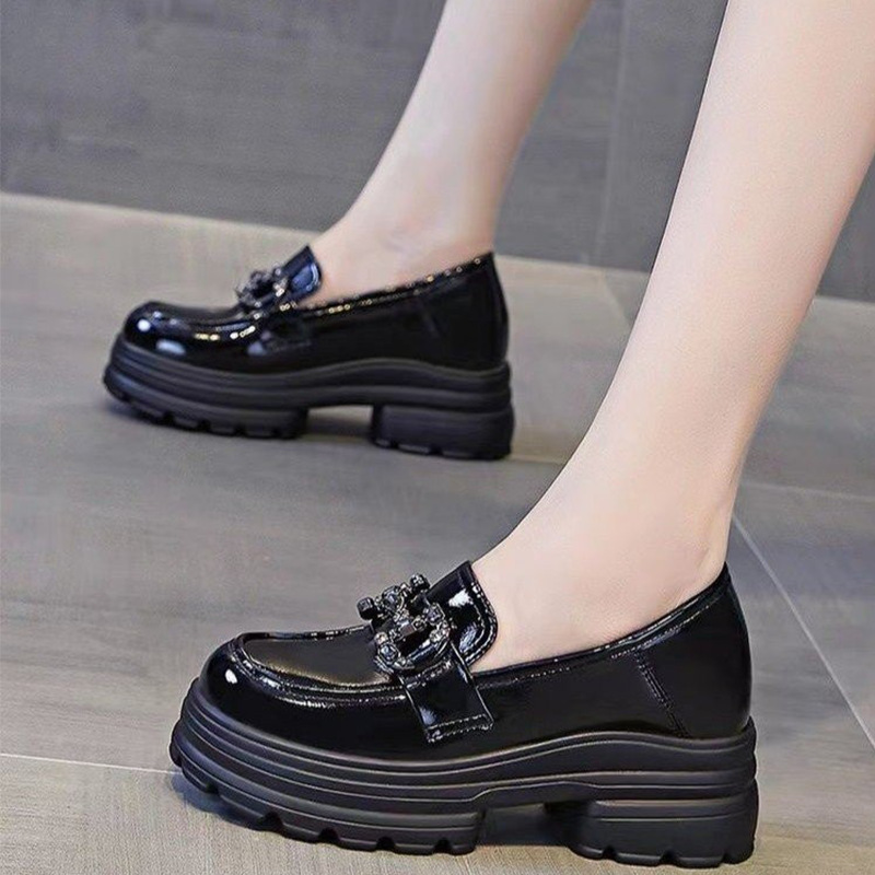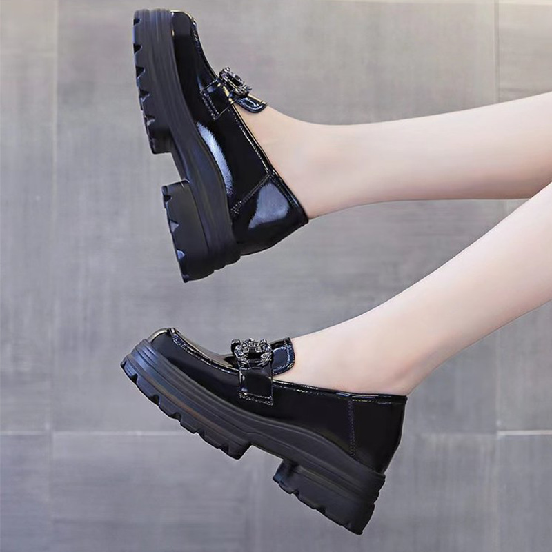 厚底乐福鞋女春季新款学院风jk百搭一脚蹬增高小皮鞋漆皮单鞋