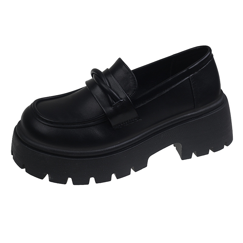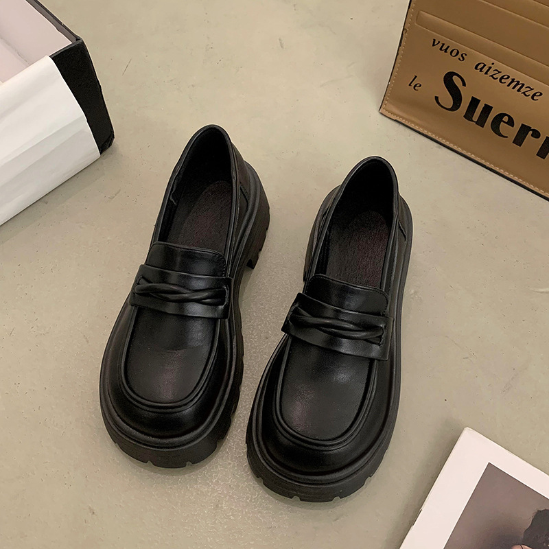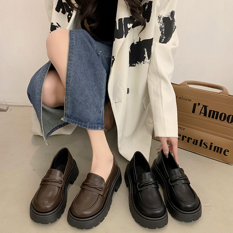 真皮厚底松糕乐福鞋女春季新款百搭学院风小皮鞋一脚蹬jk单鞋