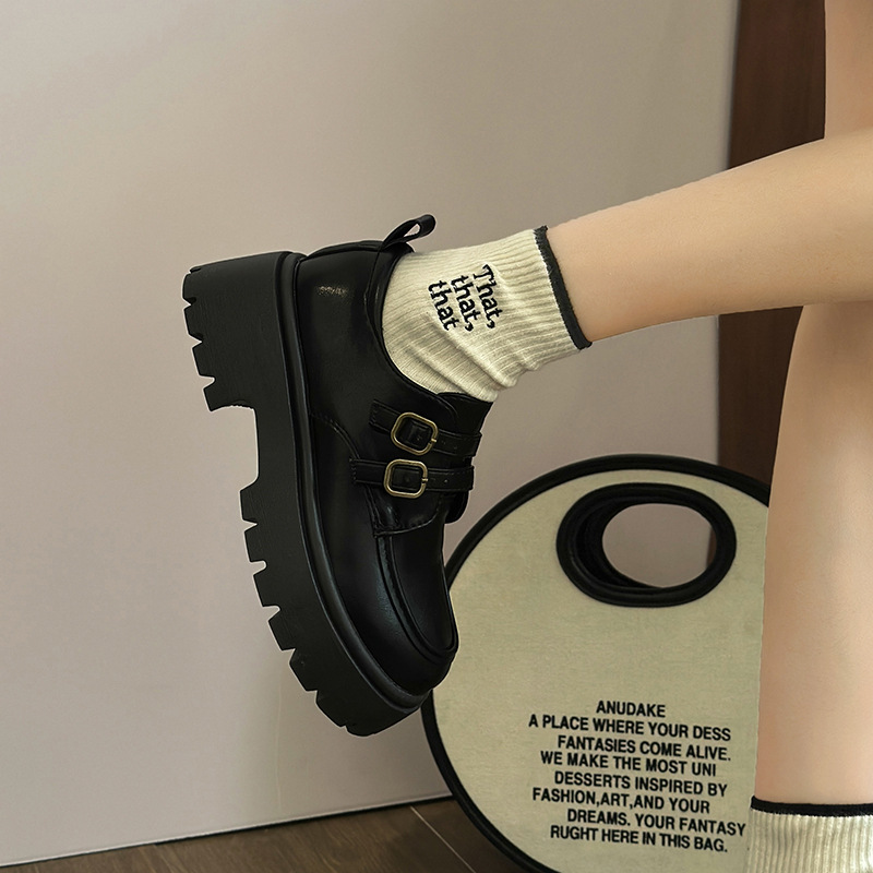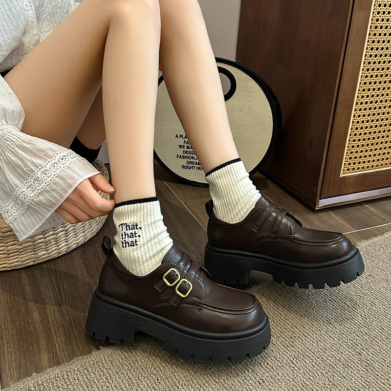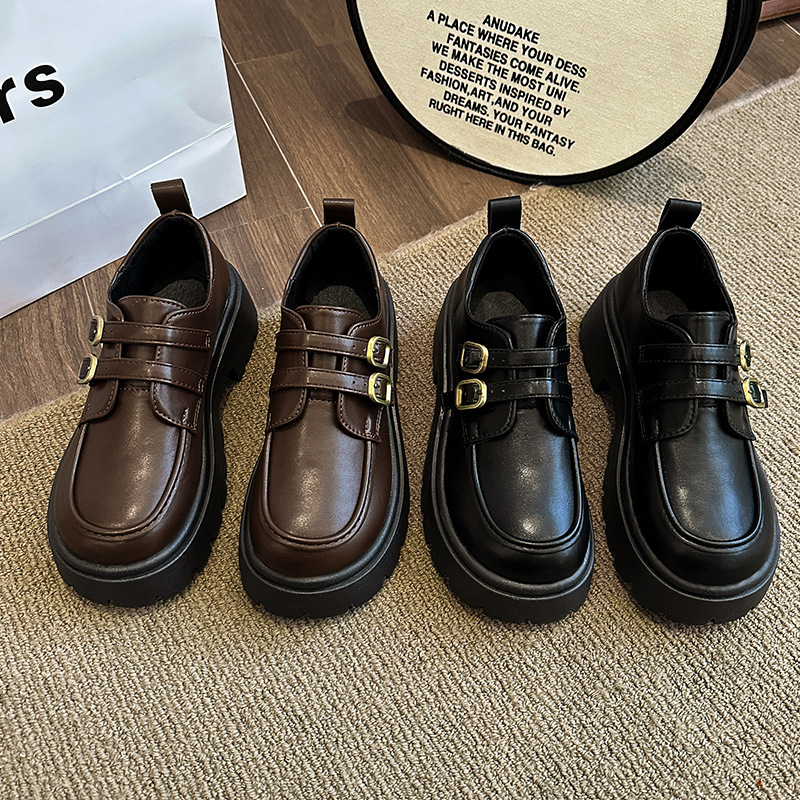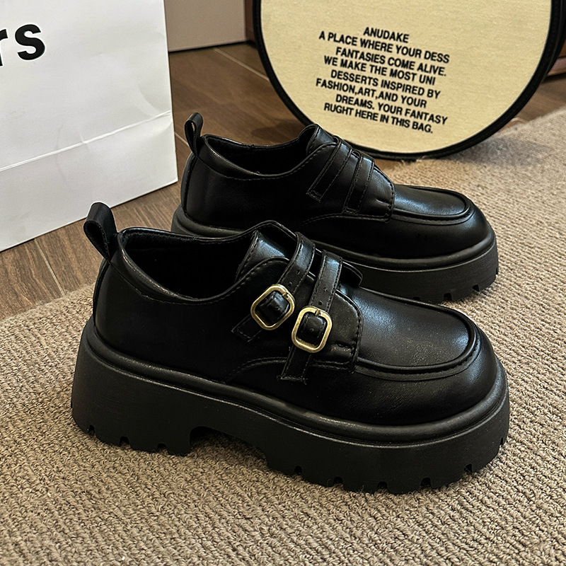 真皮厚底增高英伦风小皮鞋女年春季新款百搭懒人一脚蹬乐福鞋