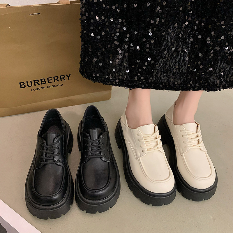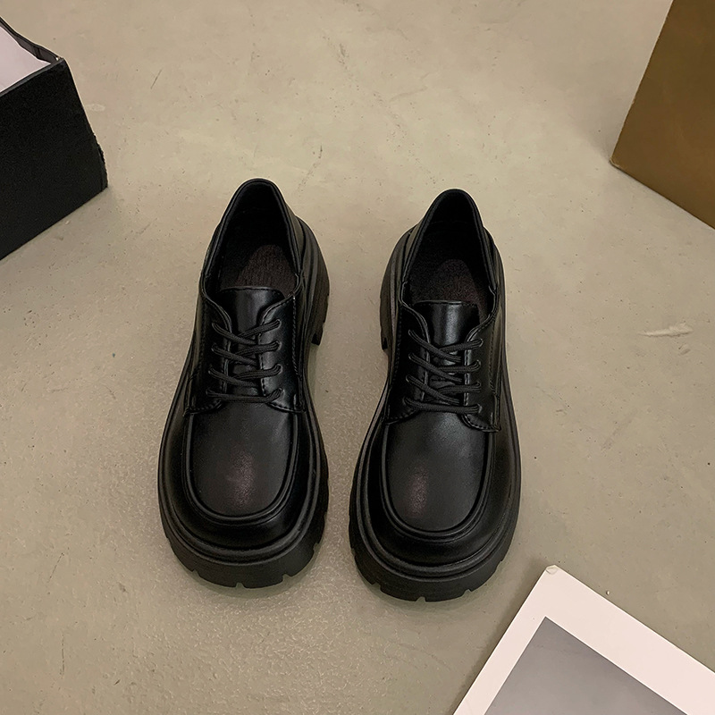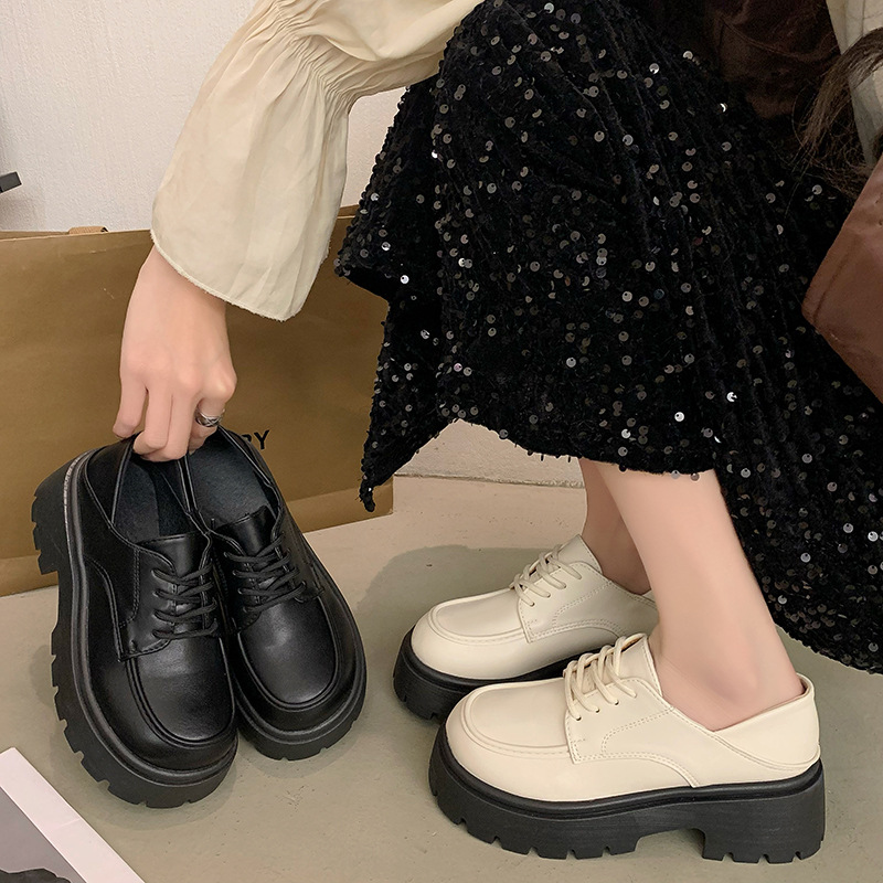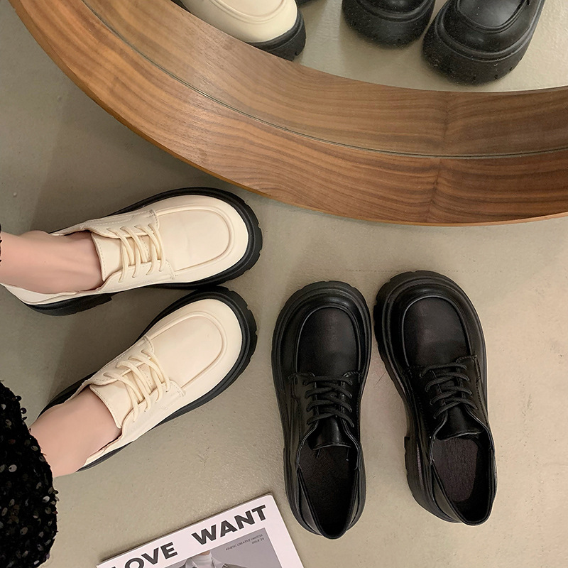 真皮厚底英伦风乐福鞋女年春季新款复古百搭日系jk两穿小皮鞋