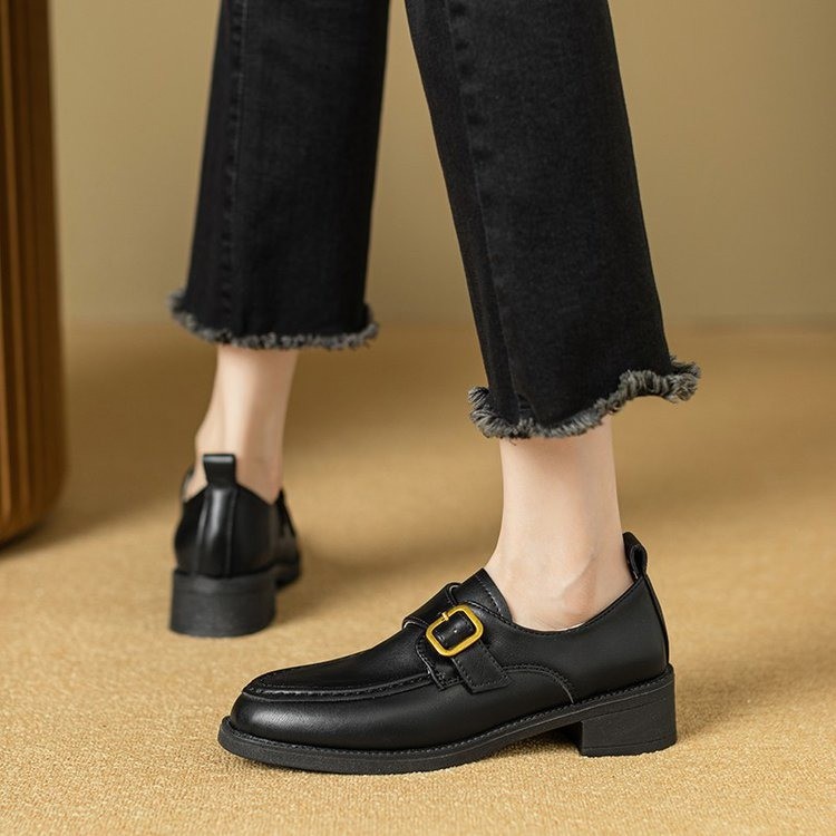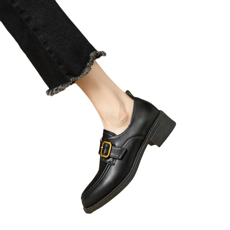 法式英伦风粗跟一脚蹬乐福鞋女春季新款复古百搭皮带扣小皮鞋