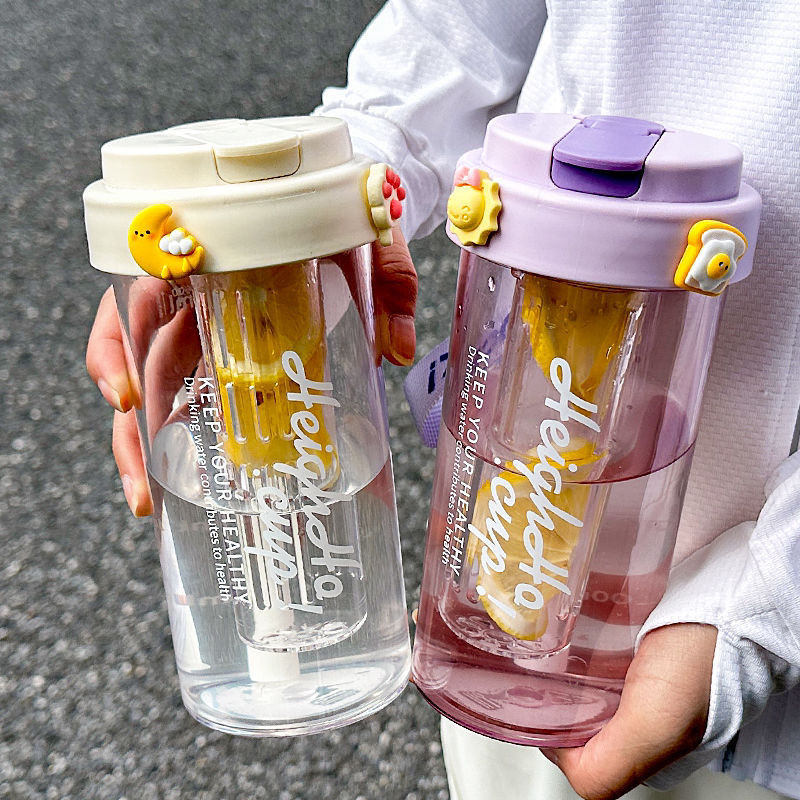 塑料水杯女生高颜值新款带茶隔吸管杯夏季大容量网红咖啡杯子