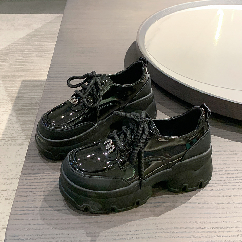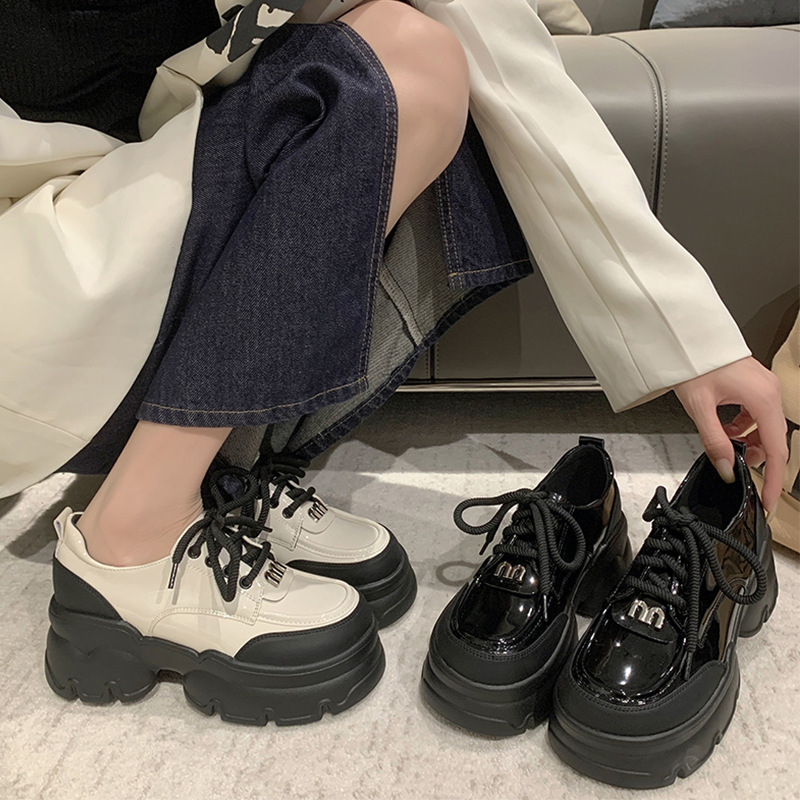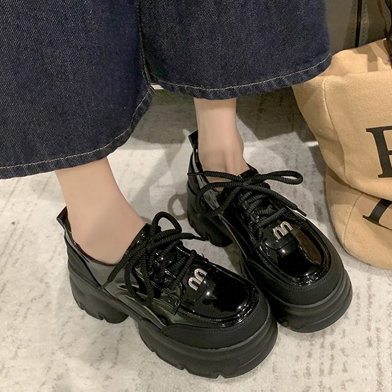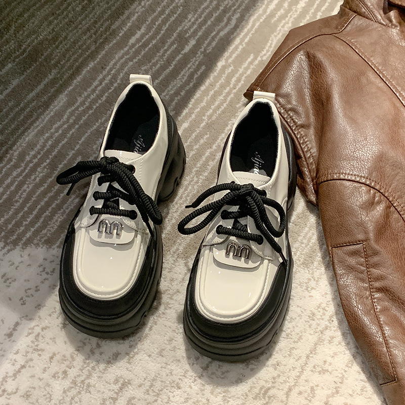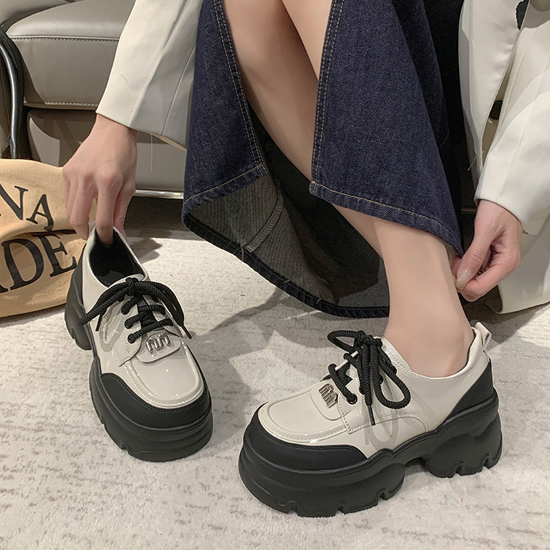 复古通勤小皮鞋女春季新款洋气百搭松糕厚底小个子增高乐福鞋