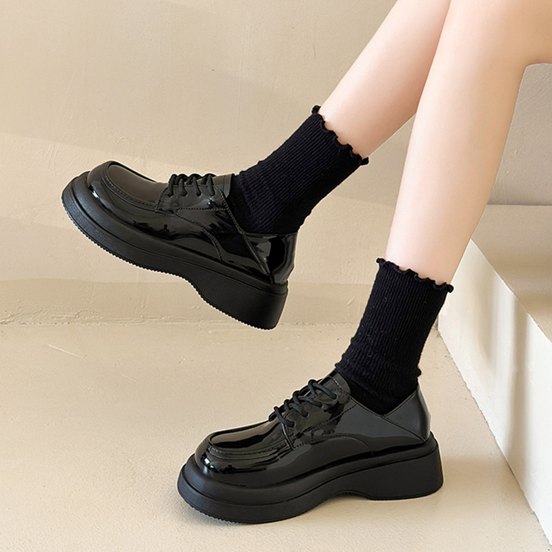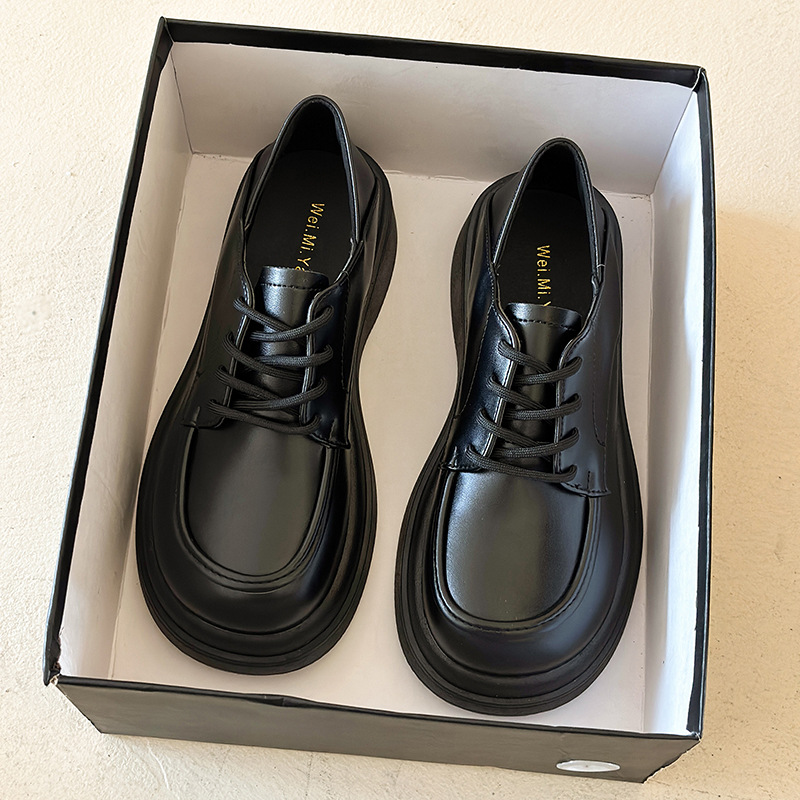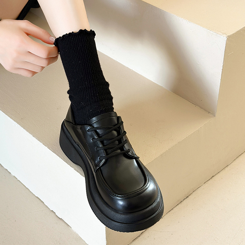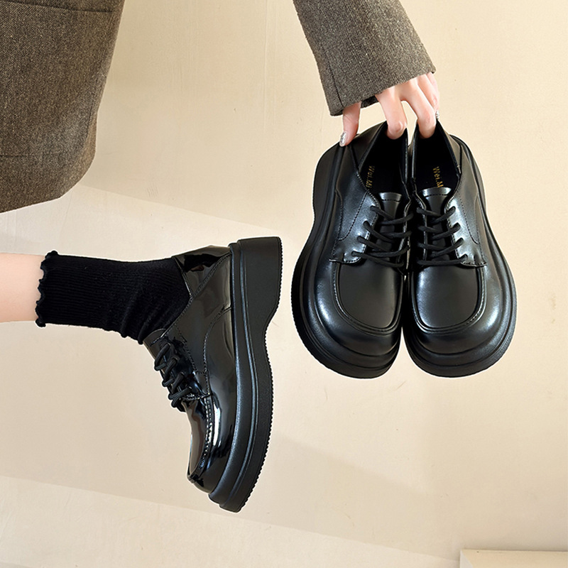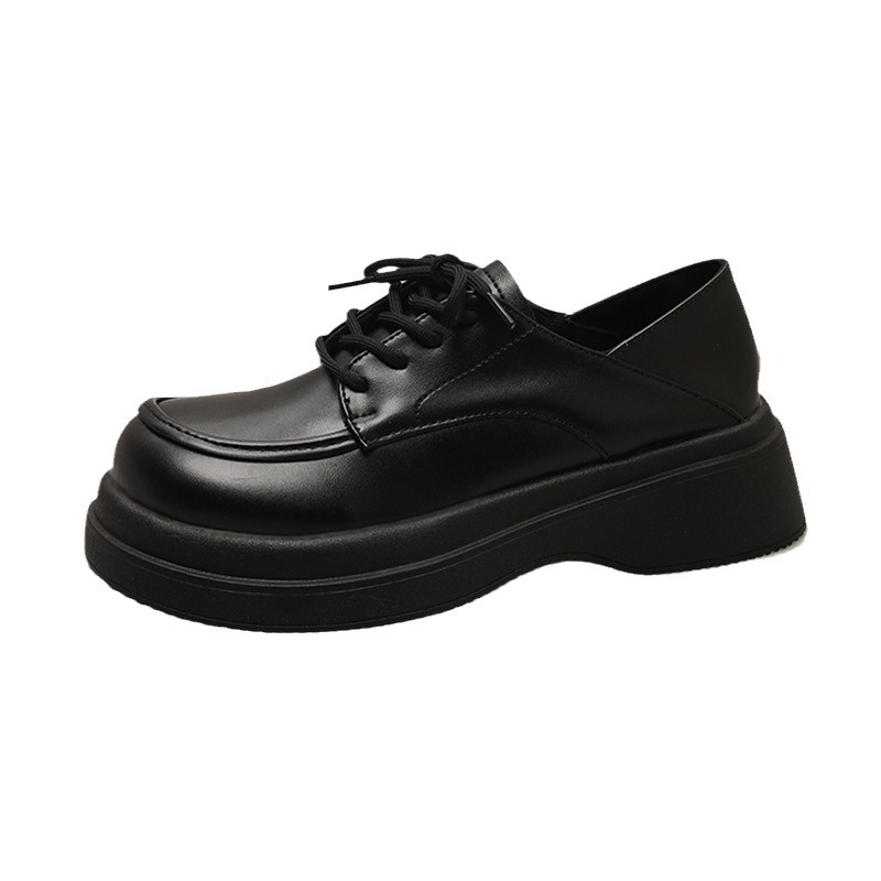 英伦风小皮鞋女两穿春季新款百搭松糕厚底小个子增高乐福单鞋