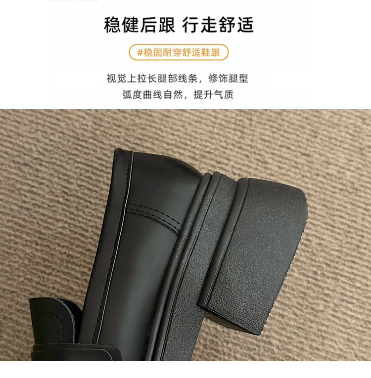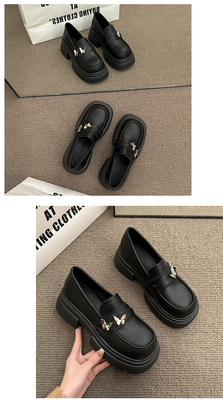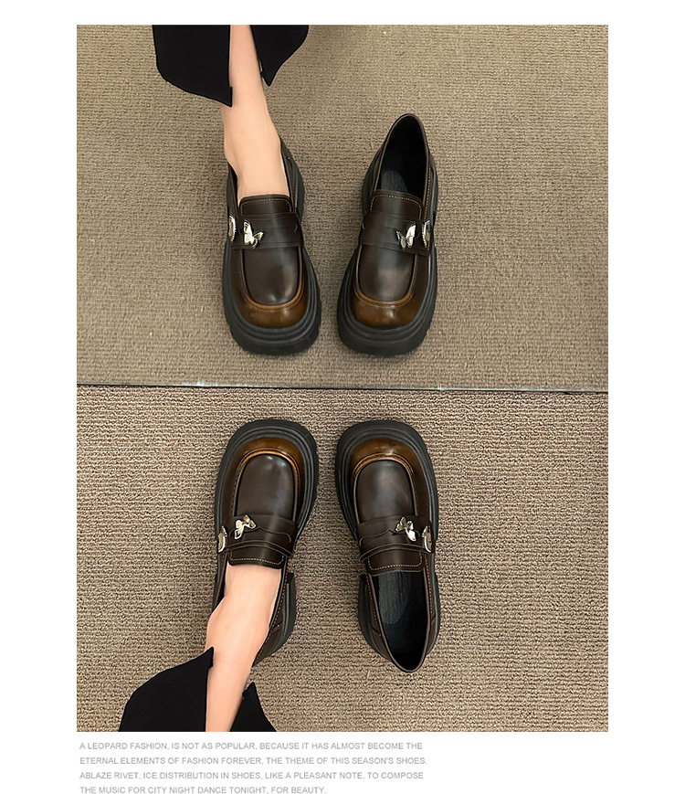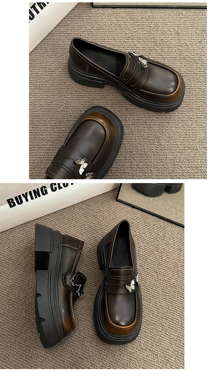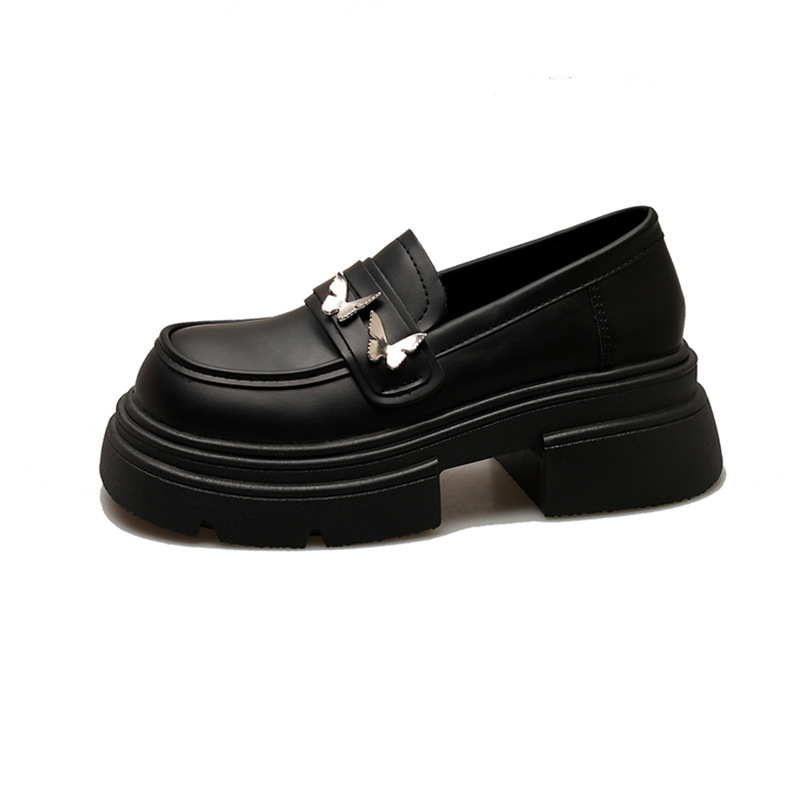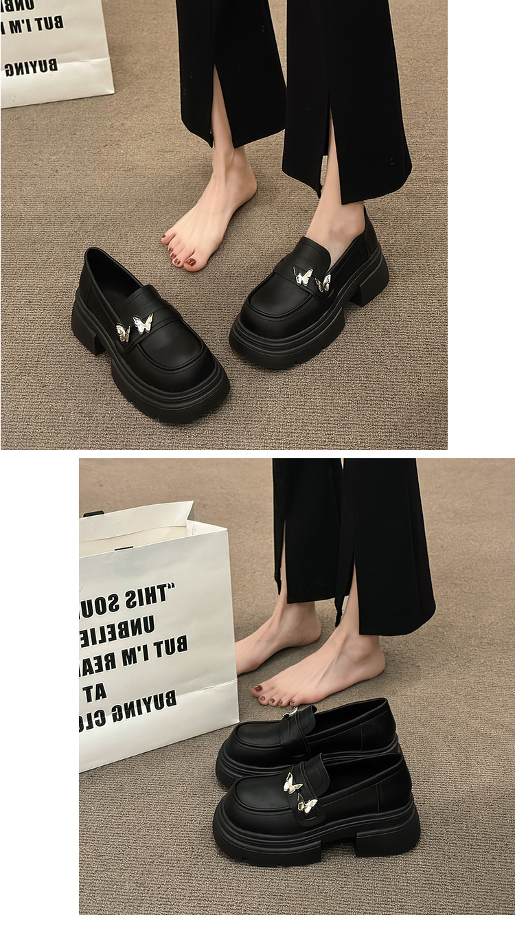 复古擦色小皮鞋女春季新款英伦风蝴蝶百搭粗跟厚底增高乐福鞋
