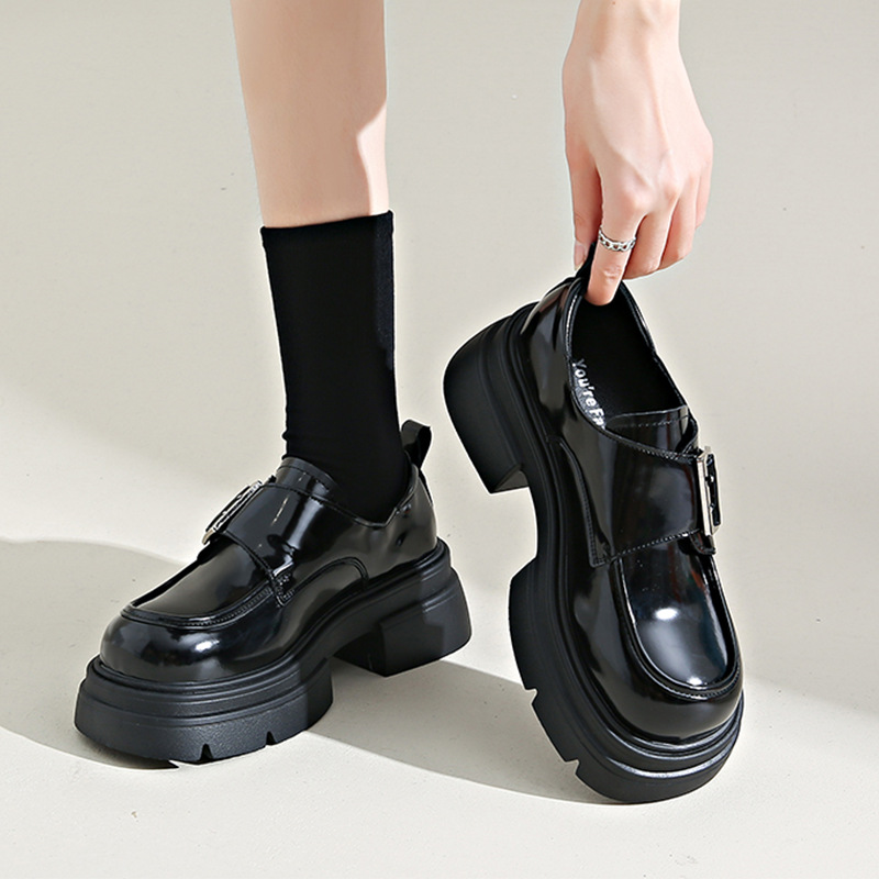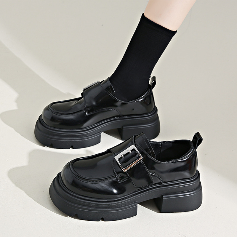真皮厚底小皮鞋女春季新款百搭舒适英伦风复古一脚蹬乐福单鞋
