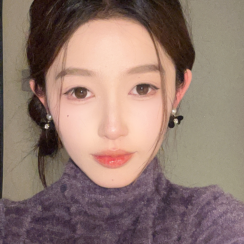小众设计黑色植绒蝴蝶结珍珠耳环女新款气质高级感耳钉耳饰