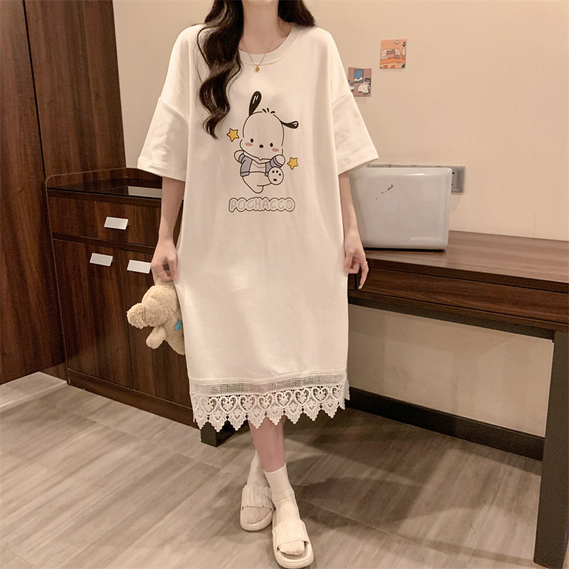 夏季睡裙女棉长裙短袖薄款甜美宽松睡衣女夏天卡通加大码家居服