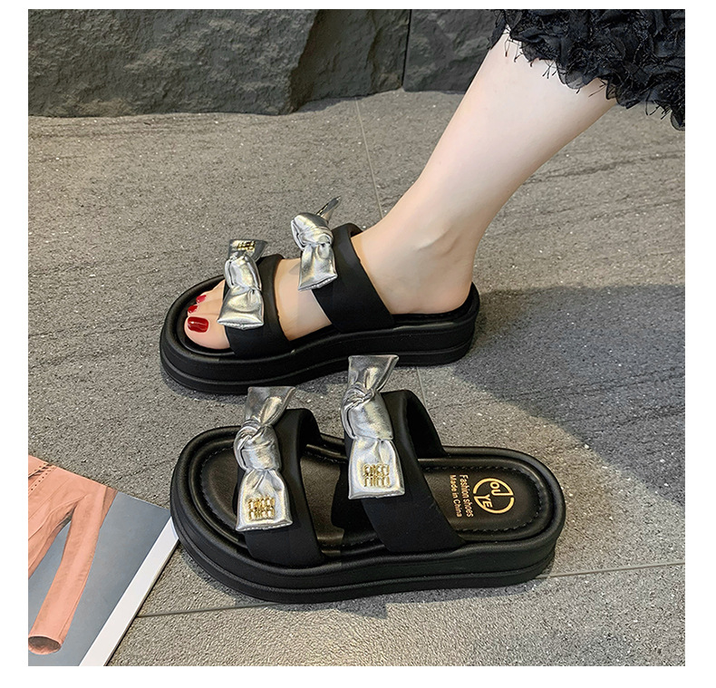 松糕厚底一字拖鞋女外穿夏季新款百搭蝴蝶结仙女风沙滩凉拖鞋