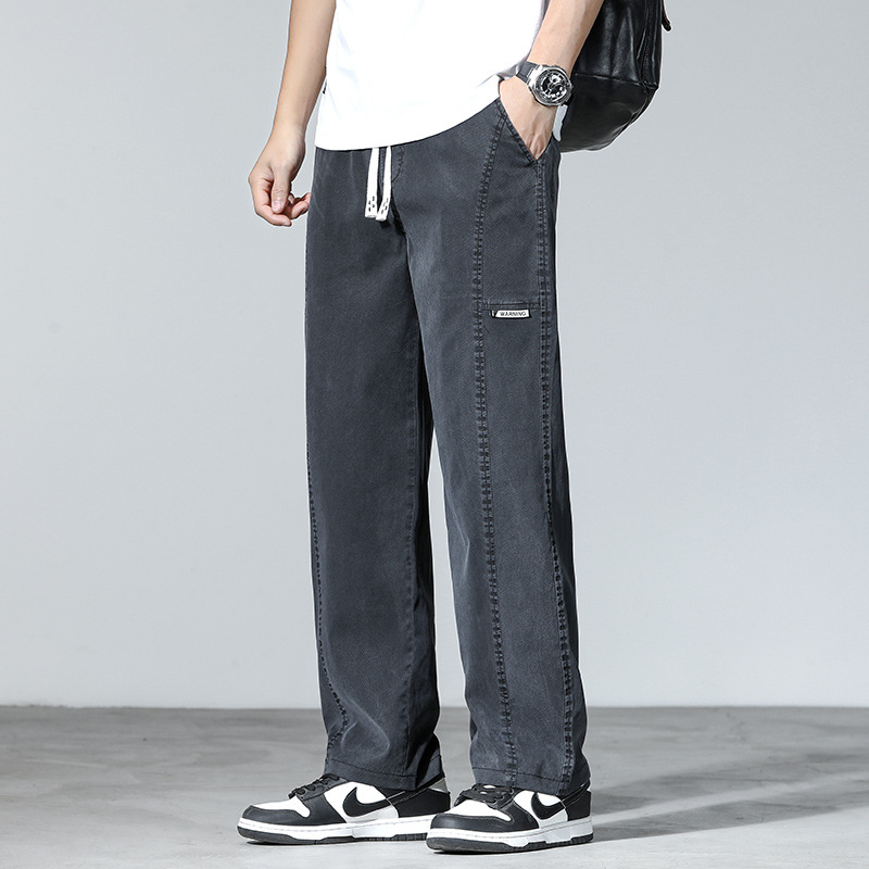 夏季薄款阔腿休闲裤男士直筒宽松潮莱赛尔牛仔天丝长裤子