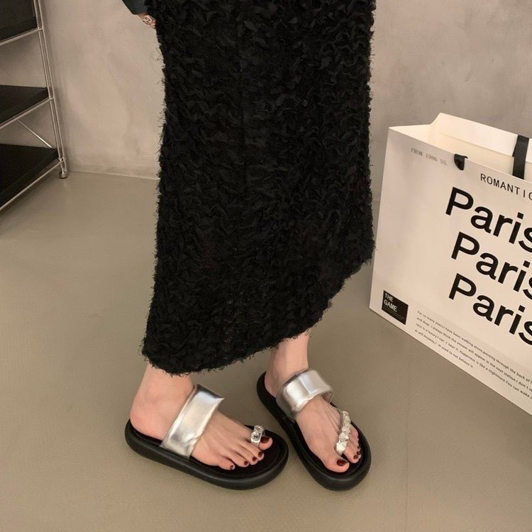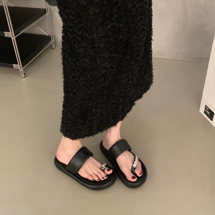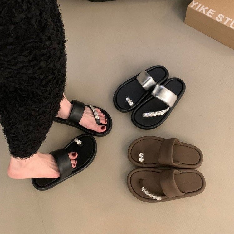 松糕厚底水钻套趾拖鞋女外穿夏季新款百搭休闲一字沙滩凉拖鞋