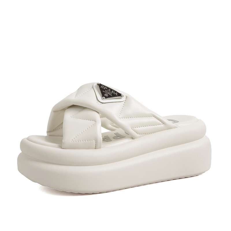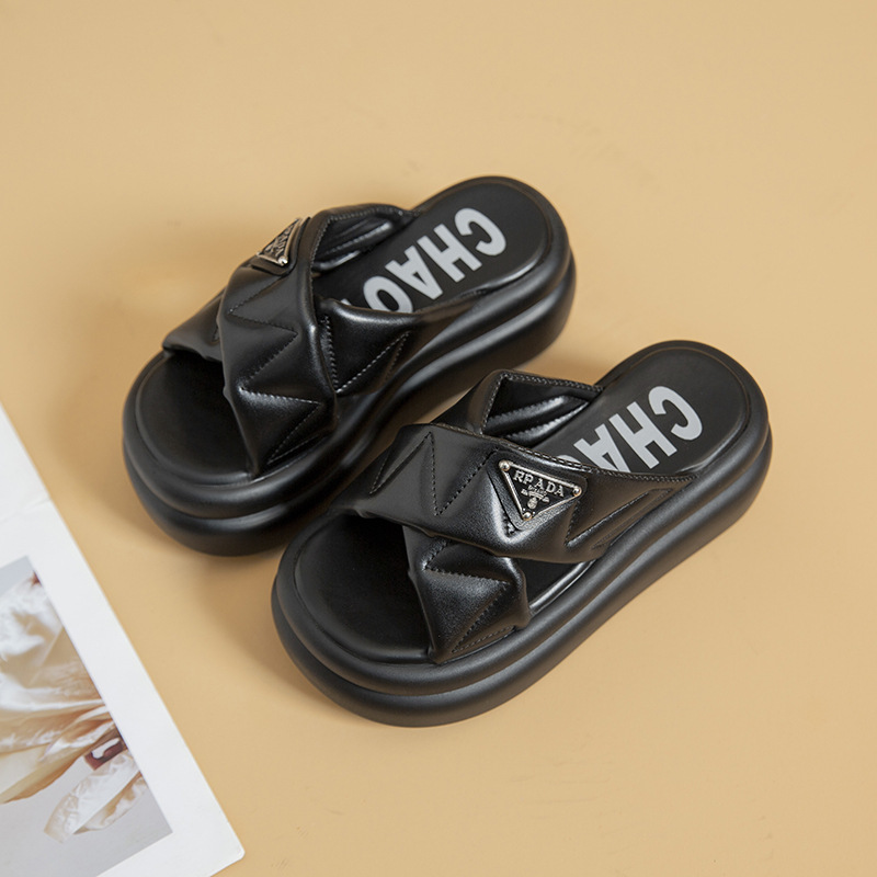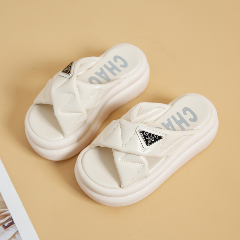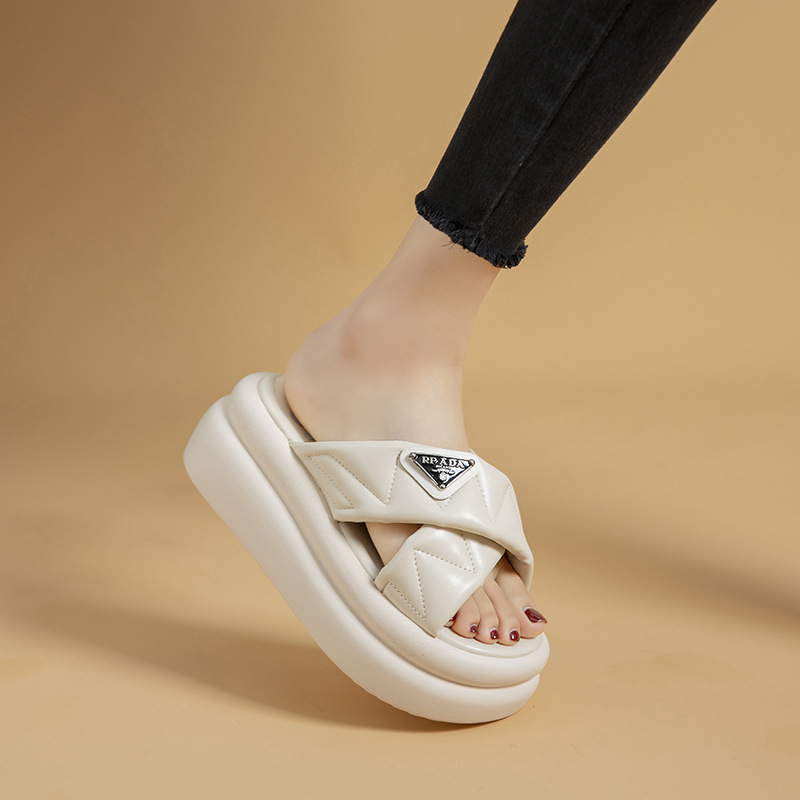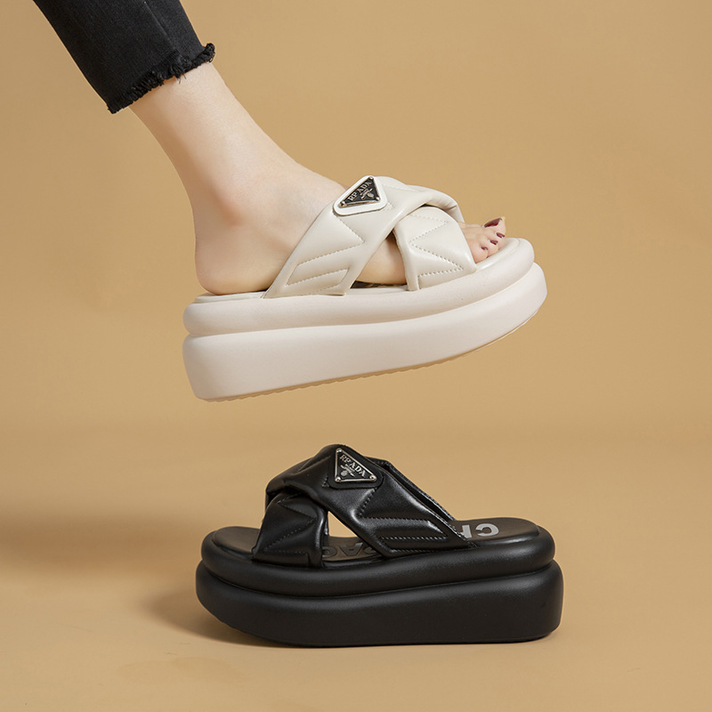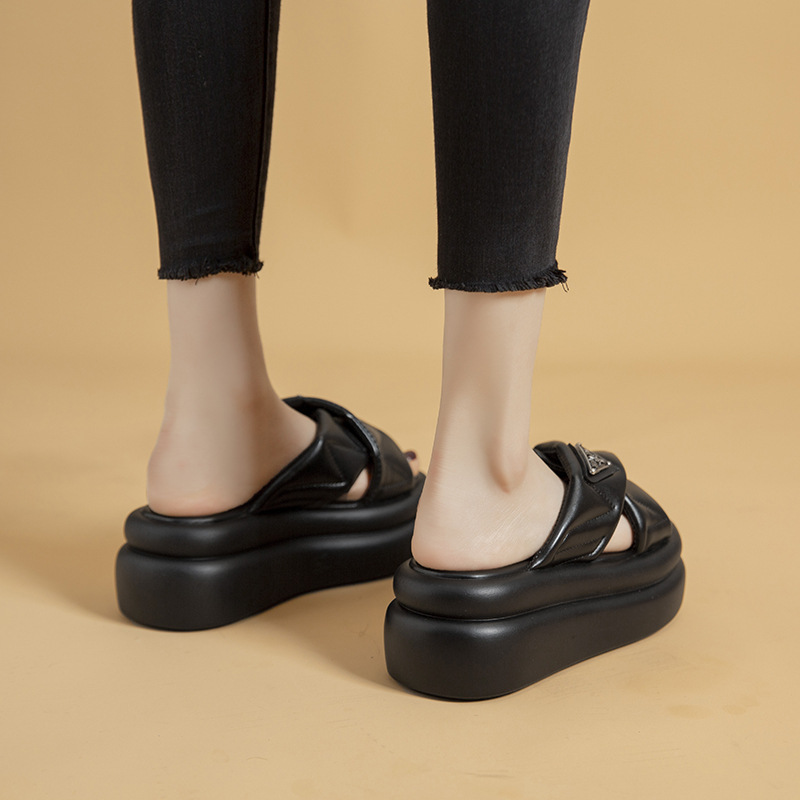 厚实增高一字拖鞋女外穿夏季新款小个子百搭交叉带休闲沙滩鞋