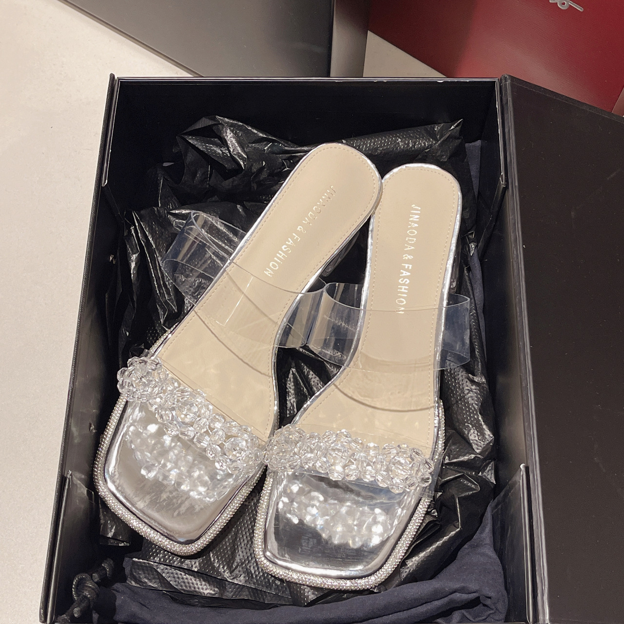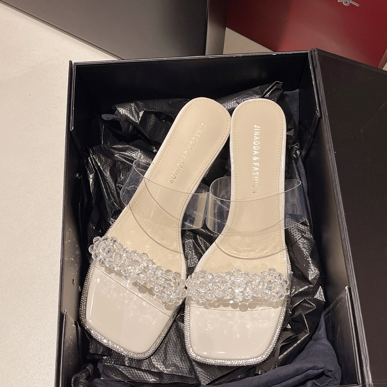 厚底粗跟透明水晶拖鞋女外穿夏季新款法式百搭一字高跟凉拖鞋