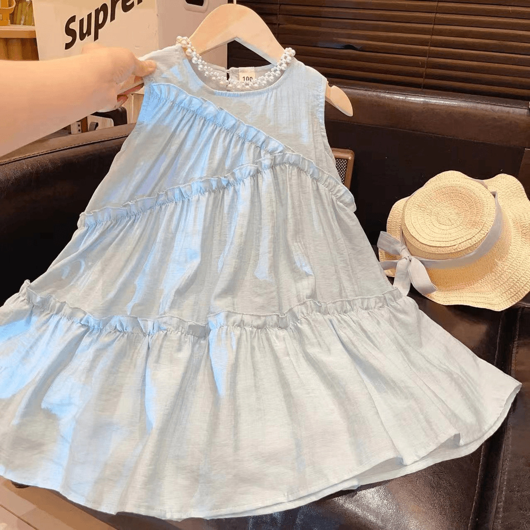 新品女童夏装法式洋气连衣裙2025儿童新款裙子纯色中小童公主裙
